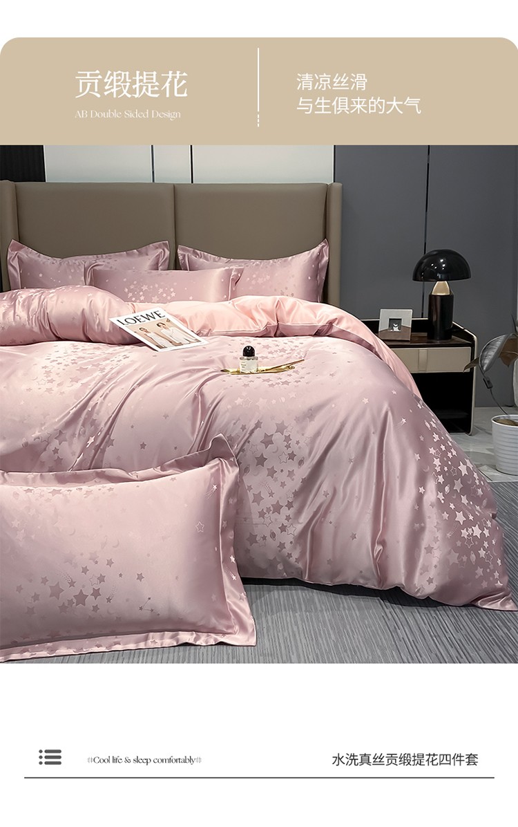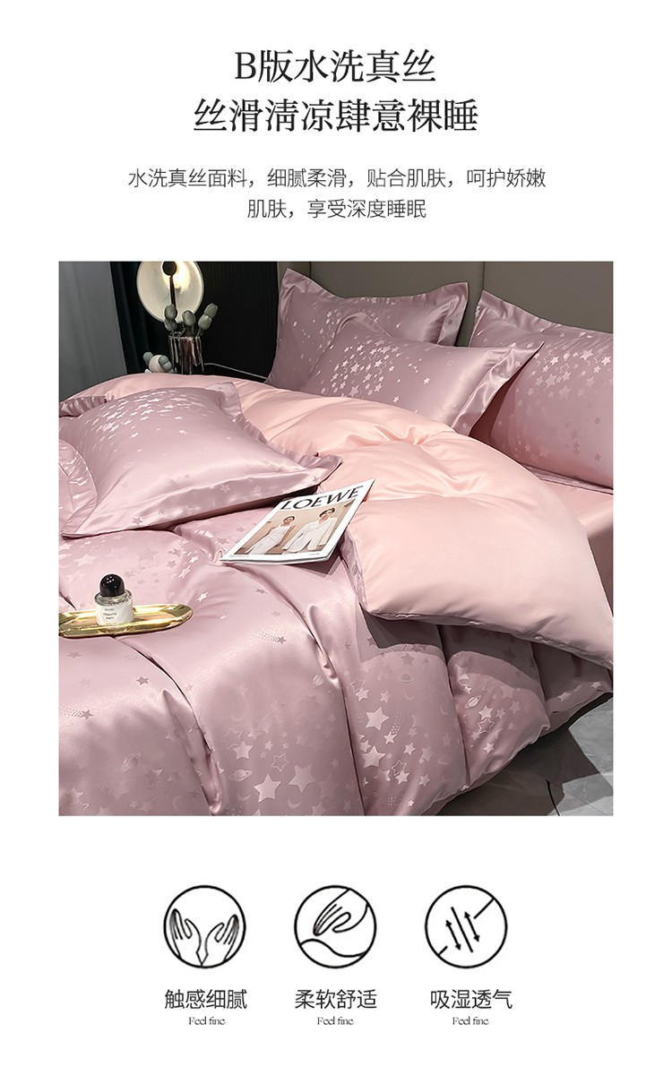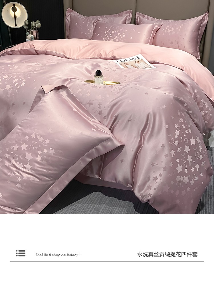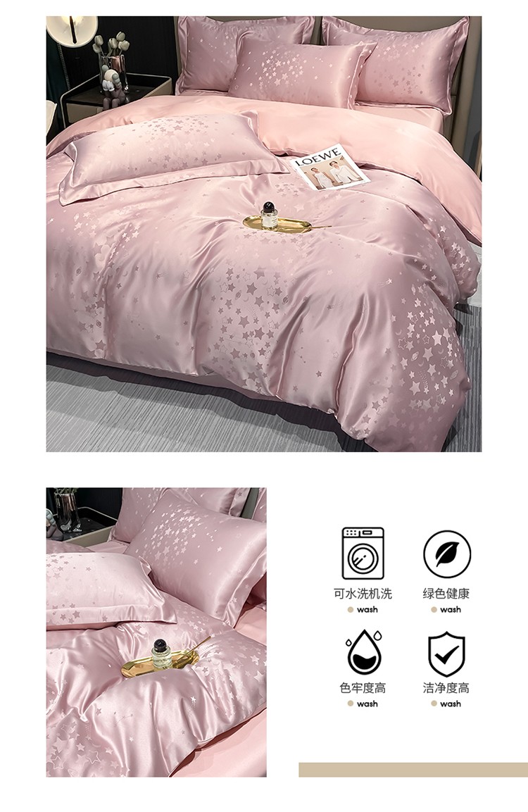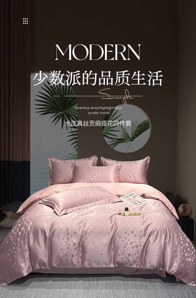 遇见家居2022水洗磨毛亲肤棉贡缎提花四件套-柏林柏林-星粉