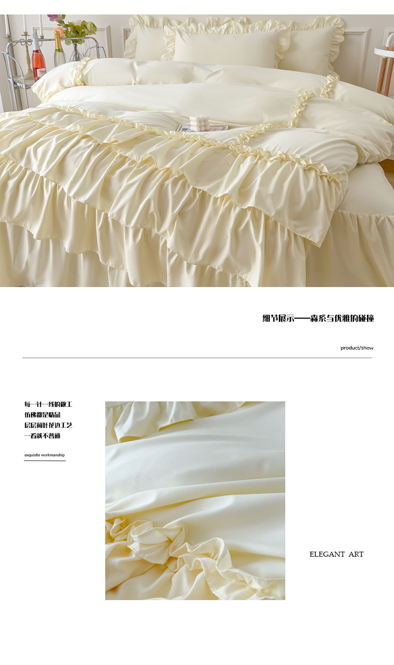 商品名称:乐卧家居 2026新款贝拉花边系列四件套 贝拉-奶油黄