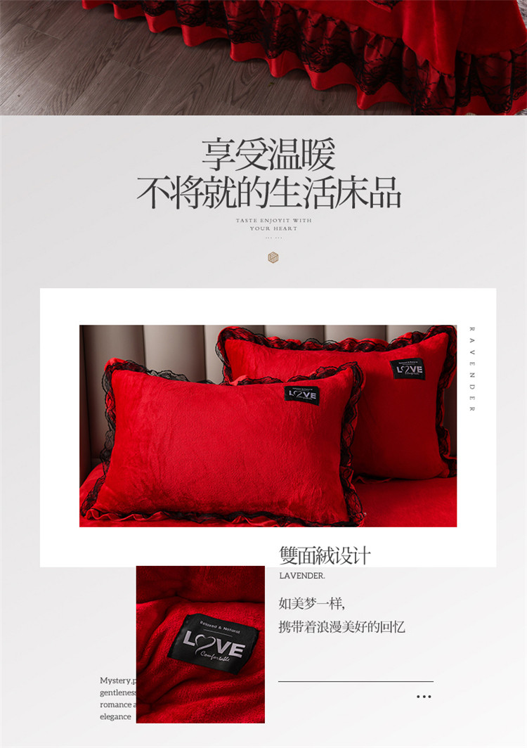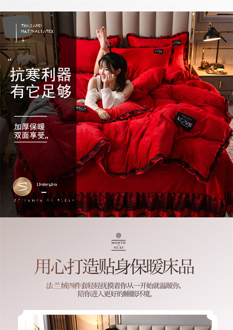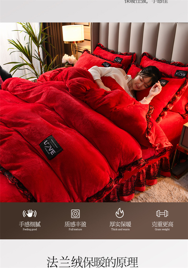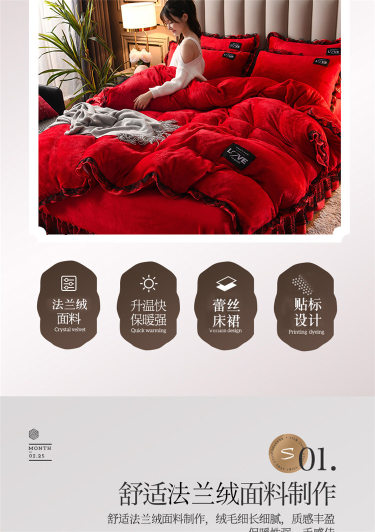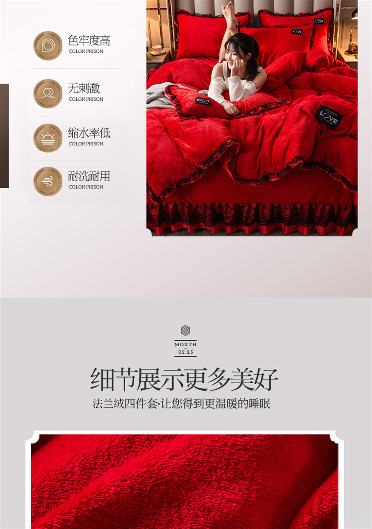 商品名称:铠畅 2022新款牛奶绒四件套-倾城系列 倾城酒红
