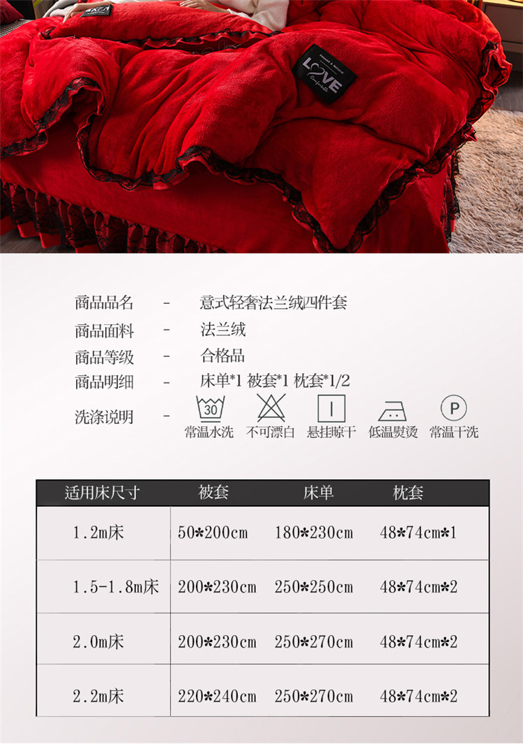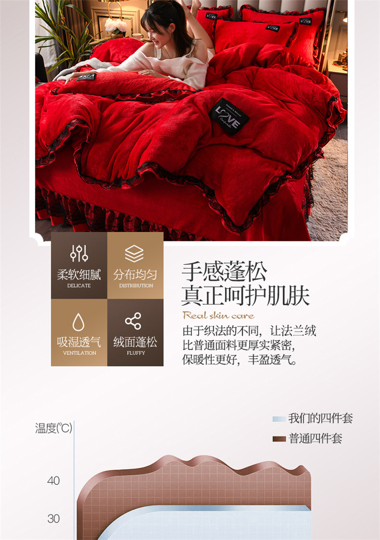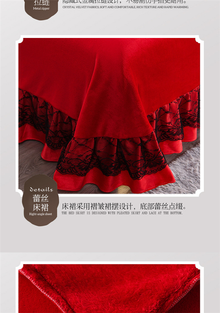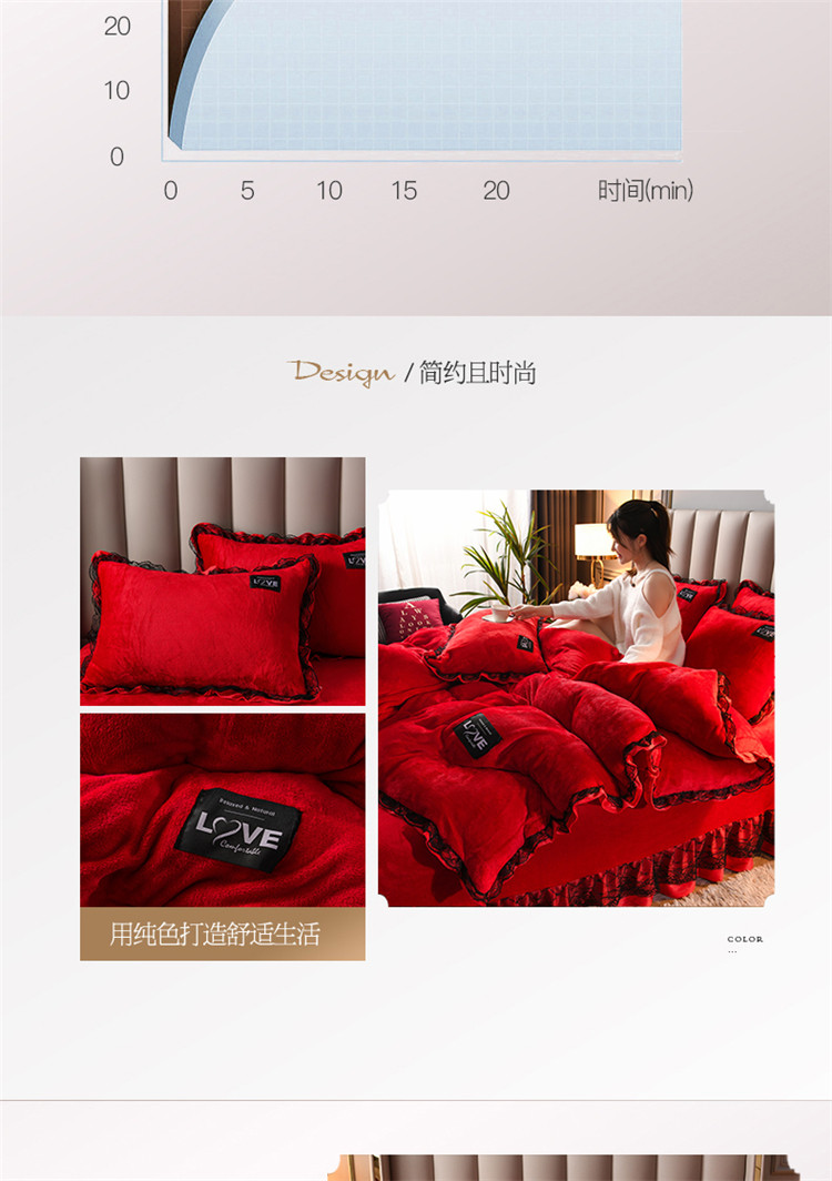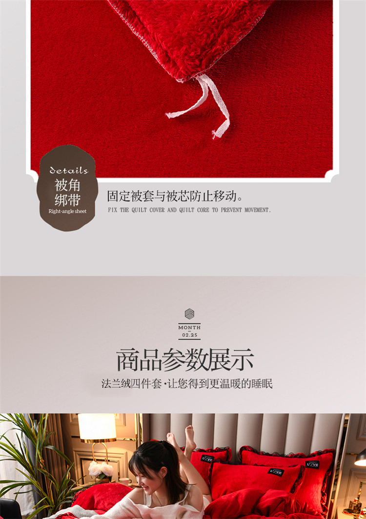 商品名称:铠畅 2022新款牛奶绒四件套-倾城系列 倾城酒红