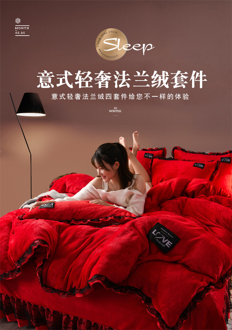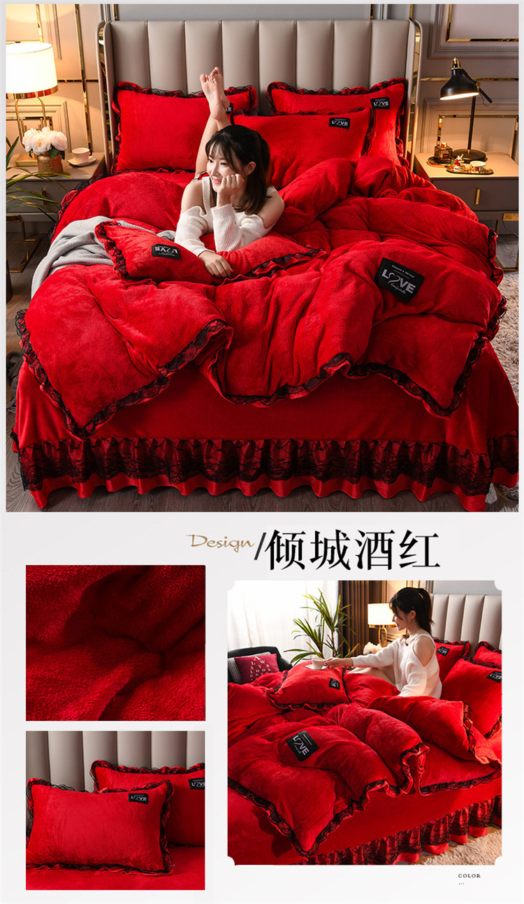 铠畅 2022新款牛奶绒四件套-倾城系列 倾城酒红