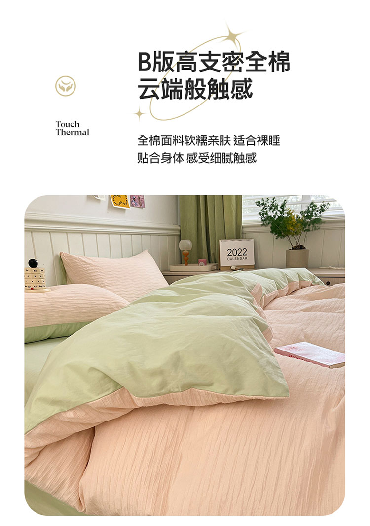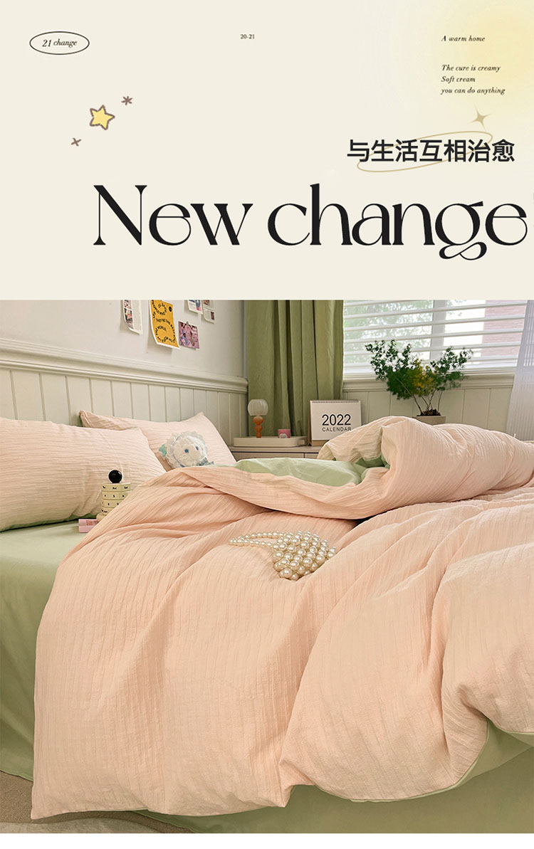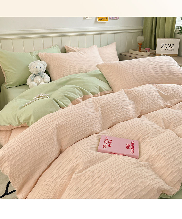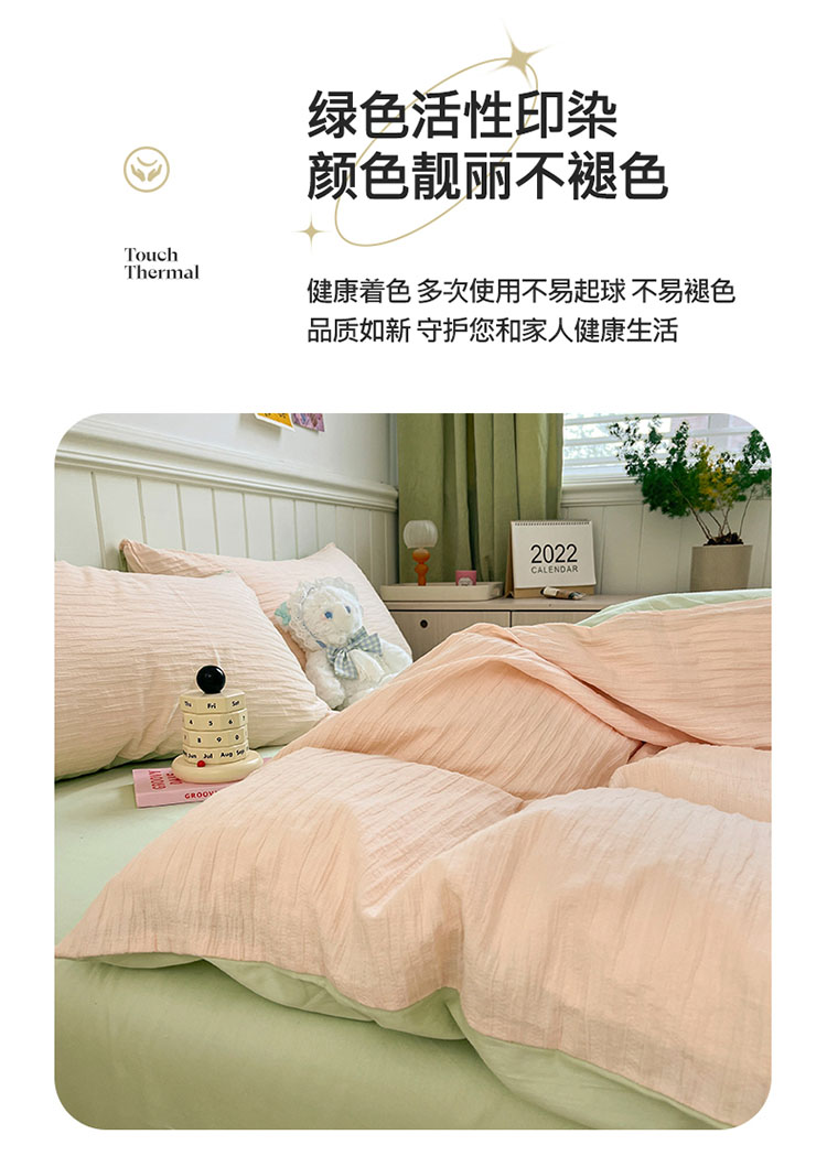 商品名称:雅居纺 2022新款全棉13372泡泡纱四件套 泡泡纱粉+清新绿