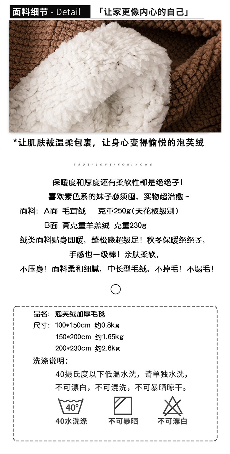商品名称:网客家纺2024年新款泡芙绒加厚毛毯 奶咖