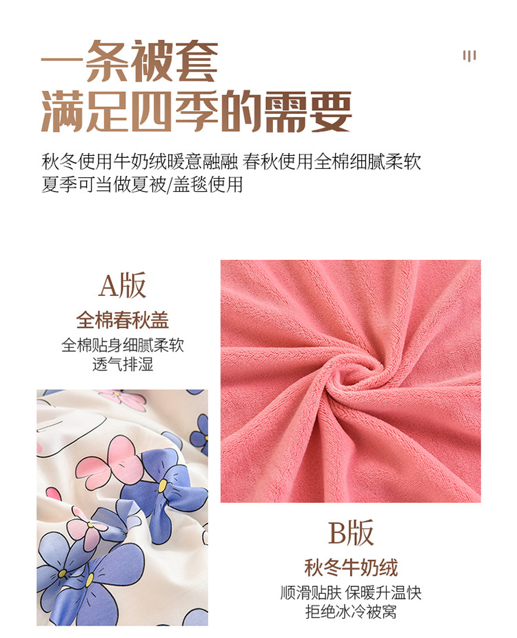(总)琪琪阁家纺 2025新款A类全棉纯棉加牛奶绒包边款单被套四件套,宝宝巴士,草莓甜心,初恋日记,菲拉格,机智萌宠,恋恋花语,漫步太空,蘑菇屋,宁静生活,情缘,手绘浪漫,太空熊,温婉佳人,笑脸草莓,熊猫乐园,字母熊,爱达拉,爱心恐龙,贝斯特,布兰卡,春日女孩,呆萌宝贝,蒂芙娜,怪兽学院,花满城,可乐贝儿,麦穗飘香,梦蝶,蜜桃松鼠,奇妙之旅,清风烟雨,瑞迪熊,水墨嫣然,汪星人,小幸运,熊猫戏水,悦享生活,枕边语,菲尔顿,童年颂,星空宝贝,雅韵花香,云梦花都