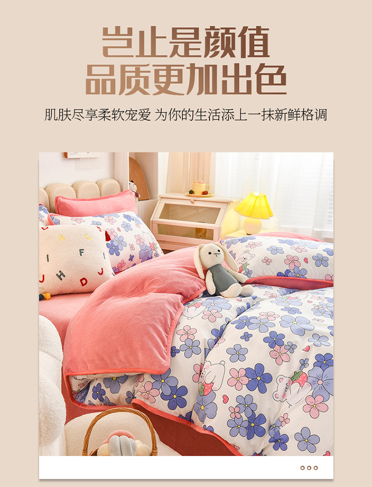 琪琪阁 2023新款A棉B绒棉加绒牛奶绒四件套单被套 宁静生活,宁静生活