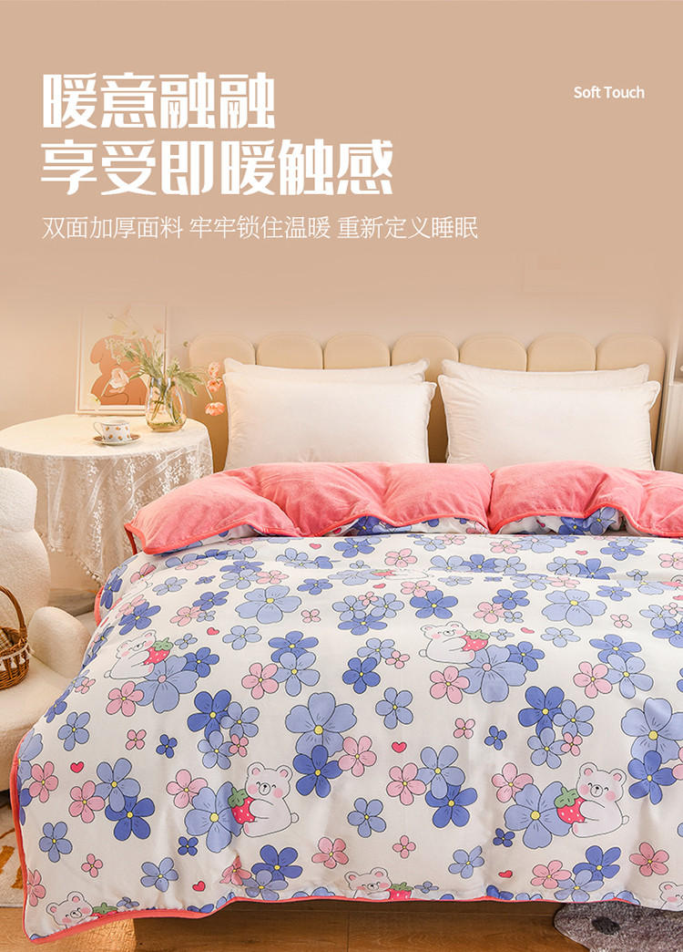 琪琪阁家纺 2022新款全棉加牛奶绒系列单被套 初恋日记
