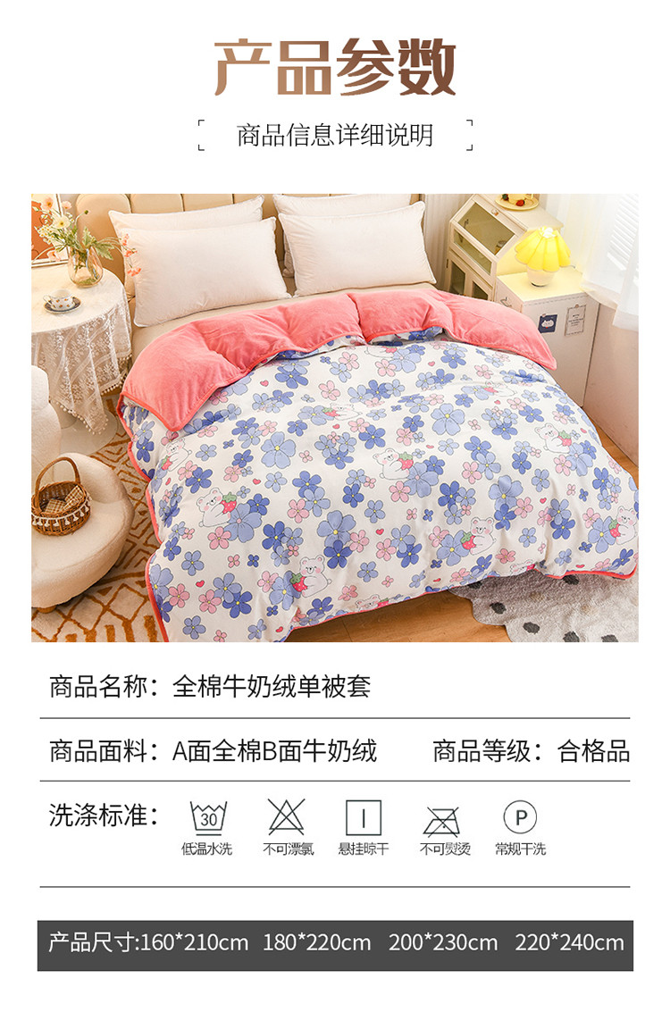 商品名称:琪琪阁家纺 2022新款全棉加牛奶绒系列单被套 初恋日记