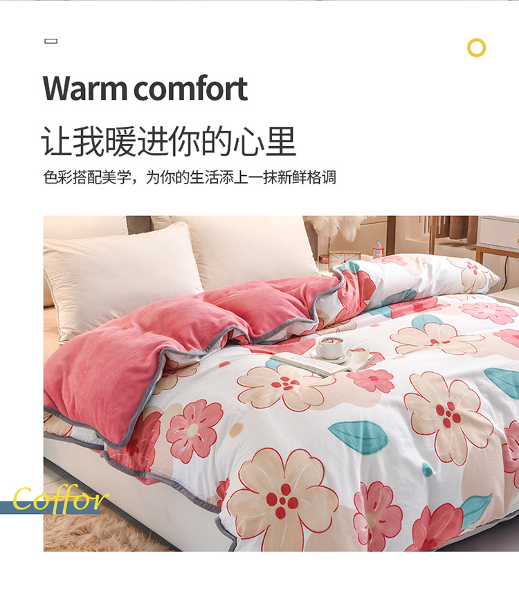 琪琪阁 2023新款A棉B绒棉加绒牛奶绒四件套单被套 宁静生活,宁静生活