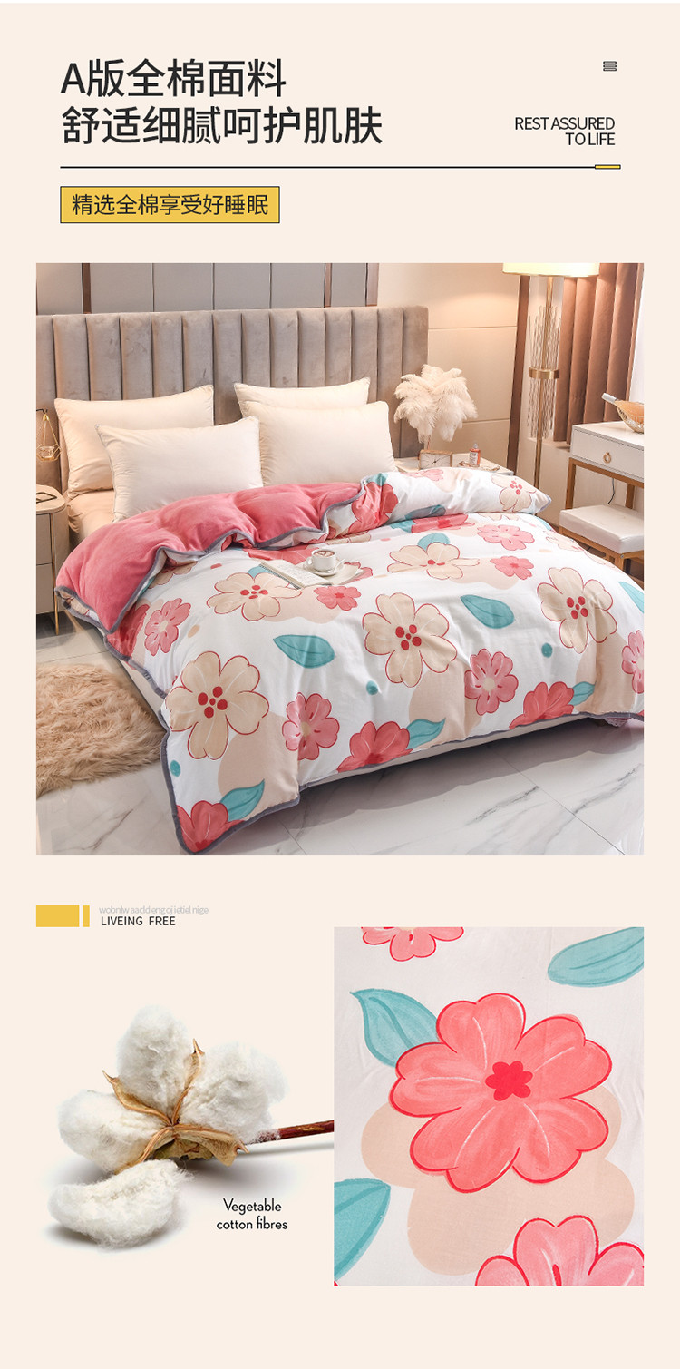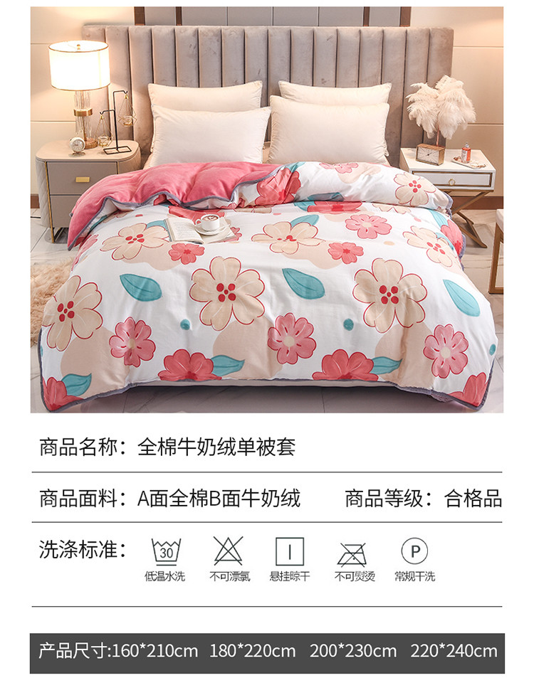 商品名称:琪琪阁家纺 2022新款全棉加牛奶绒系列单被套 解语花
