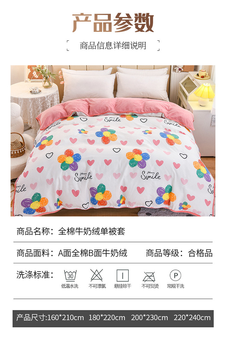 商品名称:琪琪阁家纺 2022新款全棉加牛奶绒系列单被套 手绘浪漫