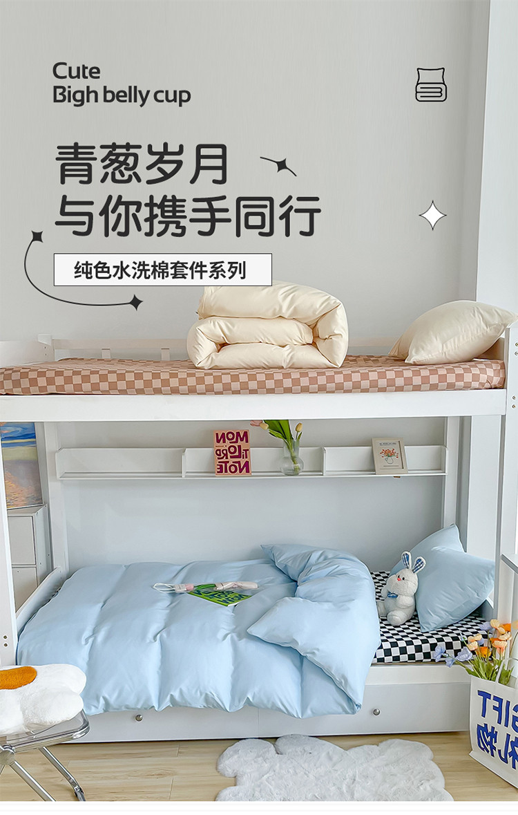 眠帛 2022新款水洗棉混搭学生床三件套 天空蓝