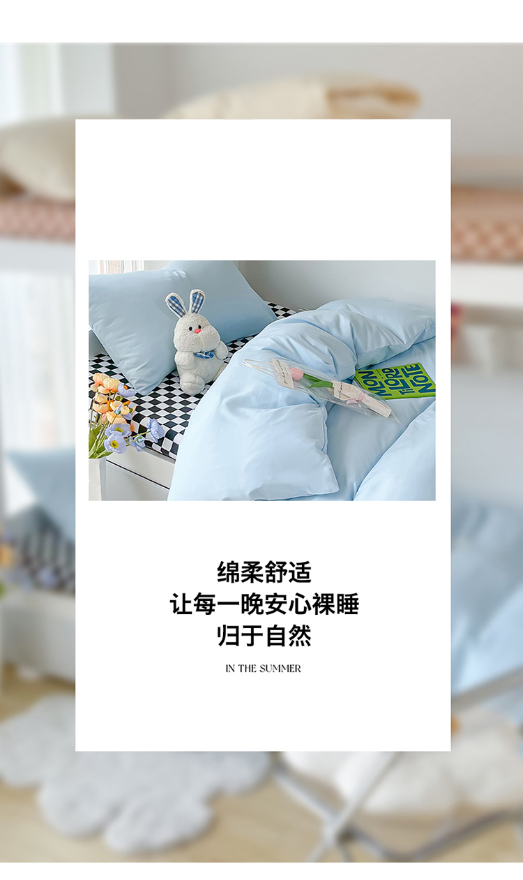 商品名称:眠帛 2022新款水洗棉混搭学生床三件套 天空蓝