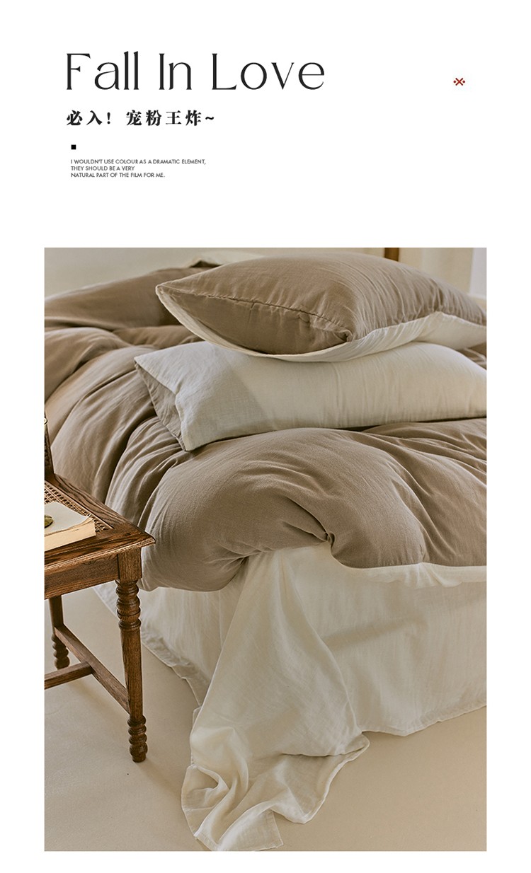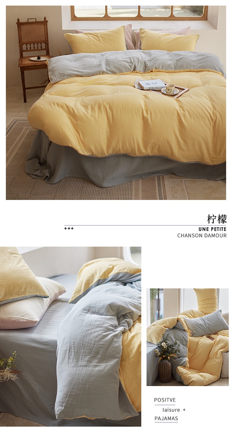 (总)安莱生活 2022新款全棉双层纱纯色四件套--小清新风