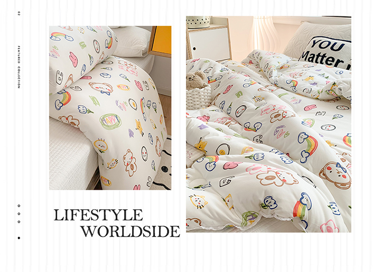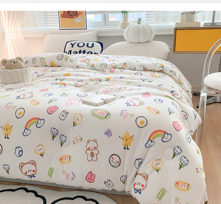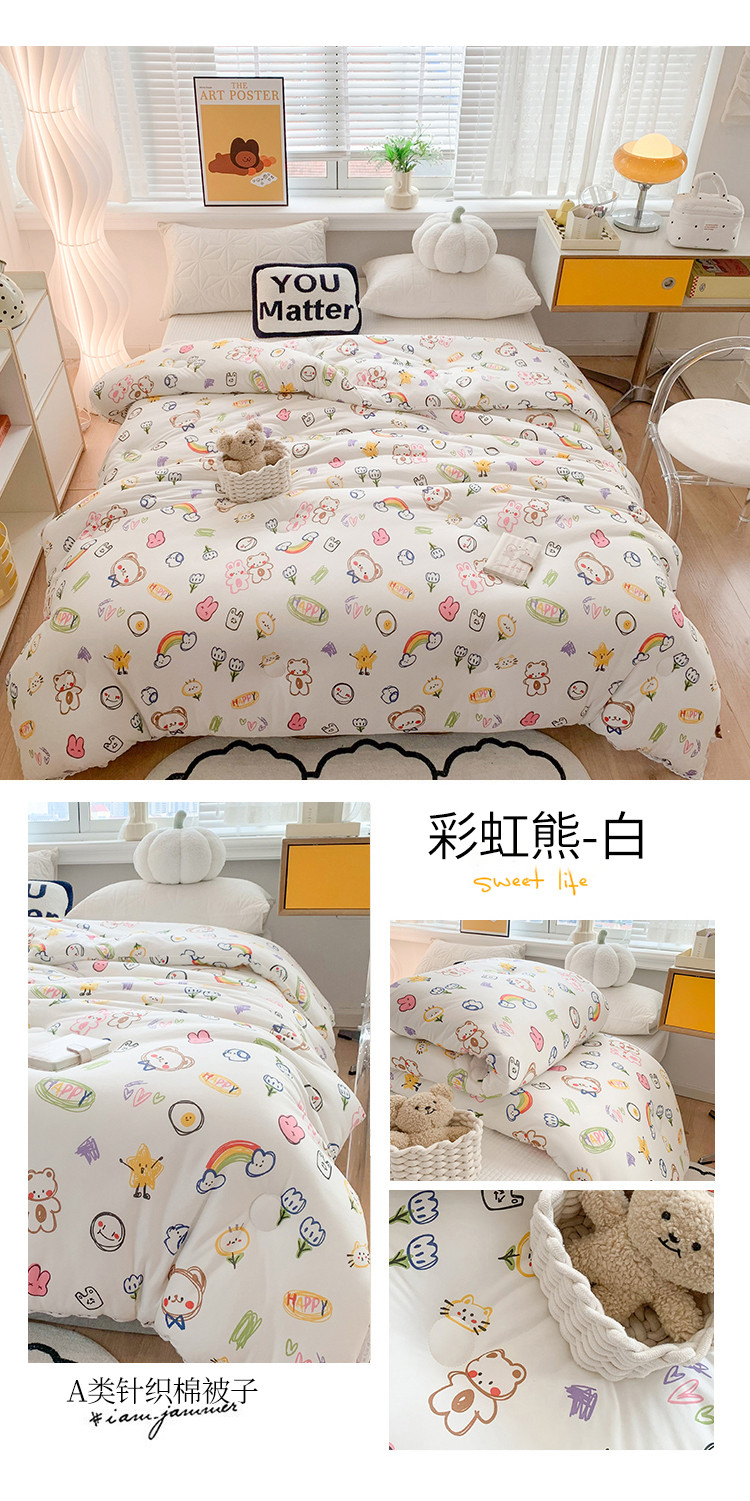 • 91家纺网 家纺一手货源 找家纺 2022新款针织棉夏被春秋被冬被 彩虹熊-白