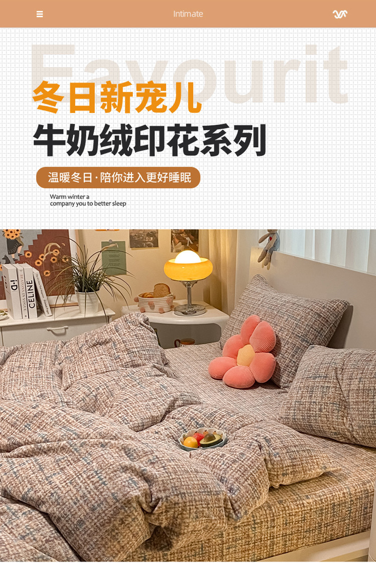 大渔生活 2024新款牛奶绒印花系列四件套 小香思
