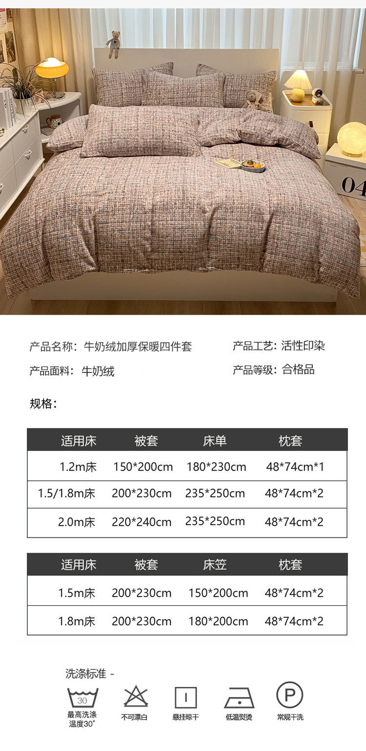 商品名称:大渔生活 2024新款牛奶绒印花系列四件套 小香思