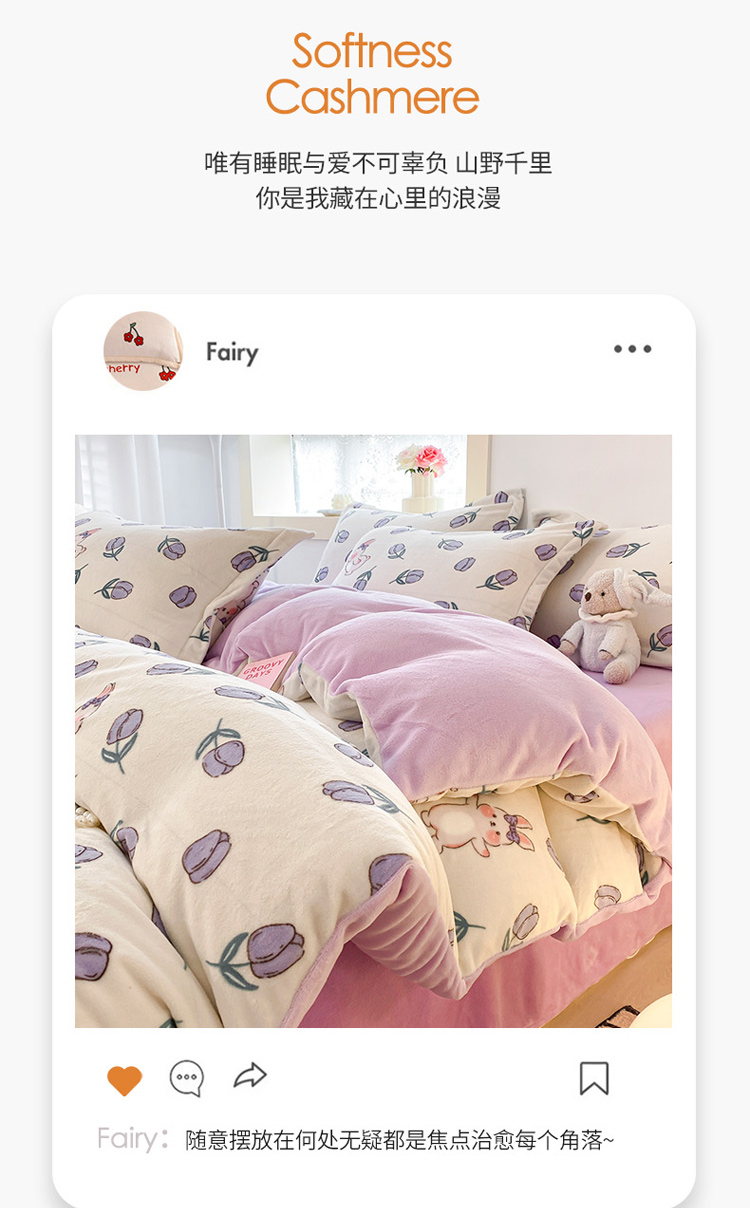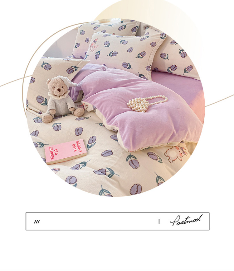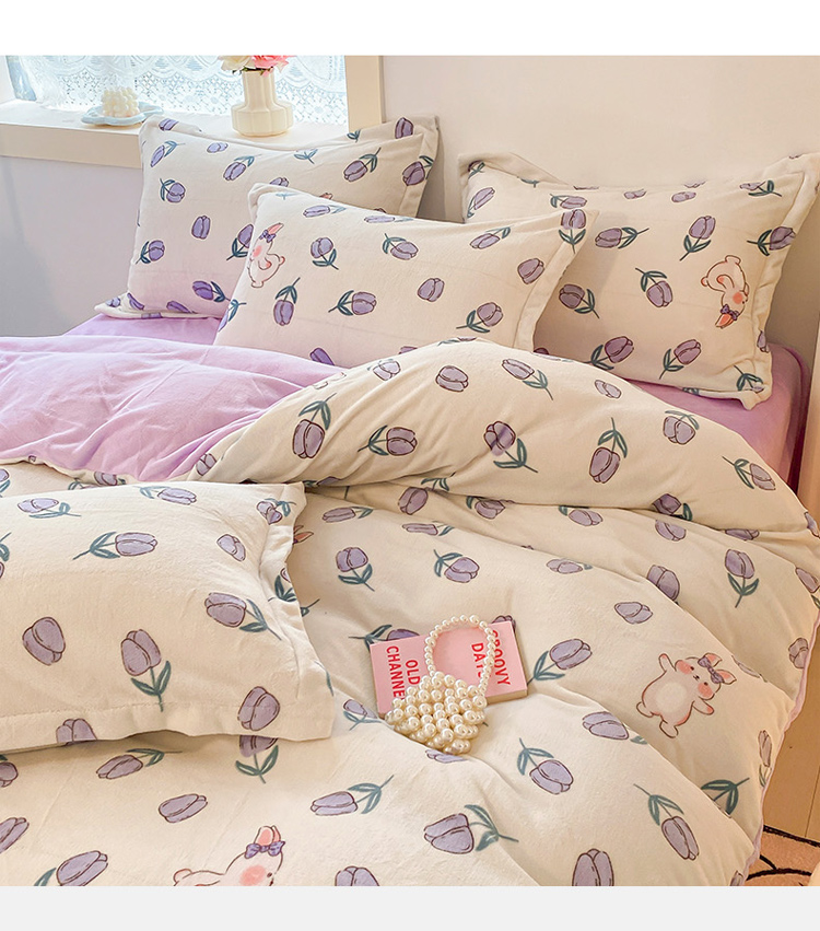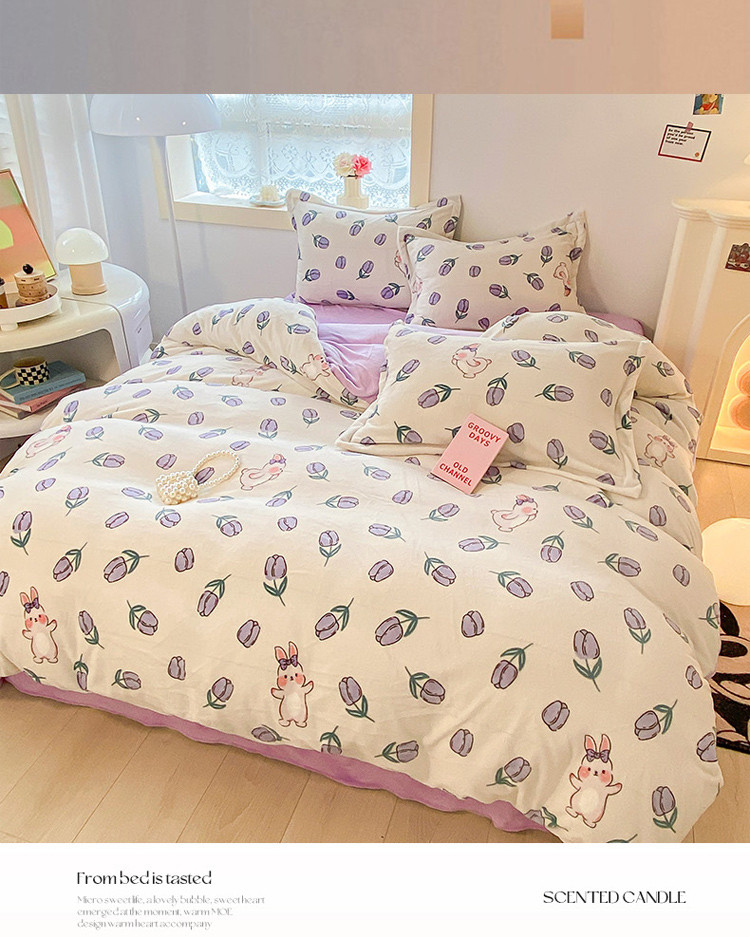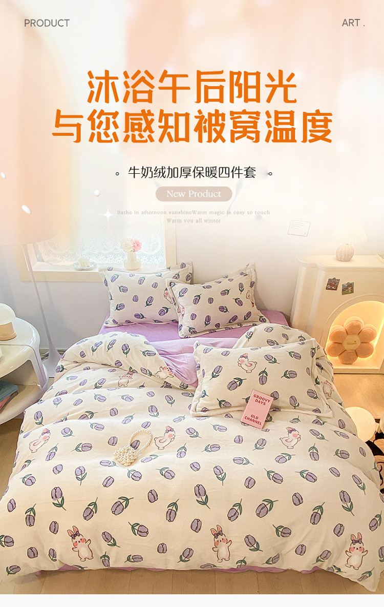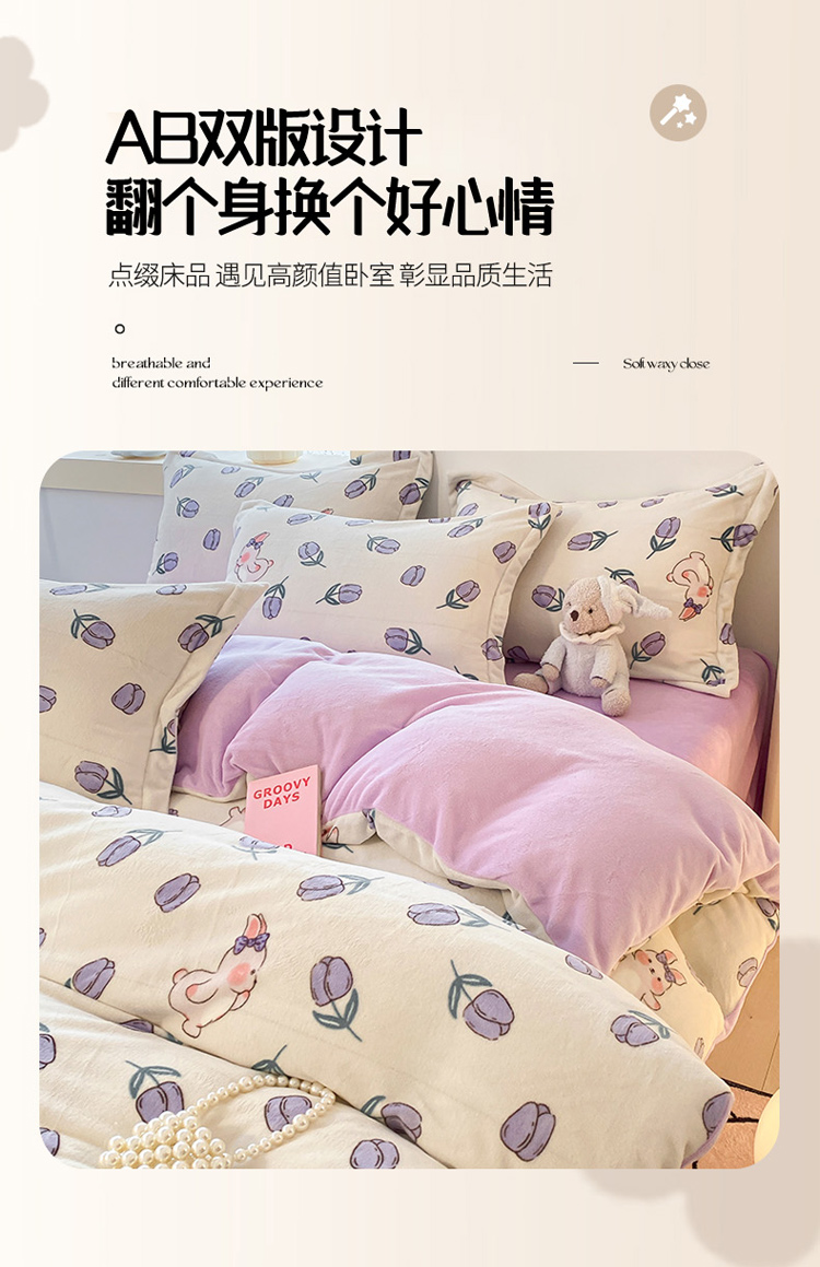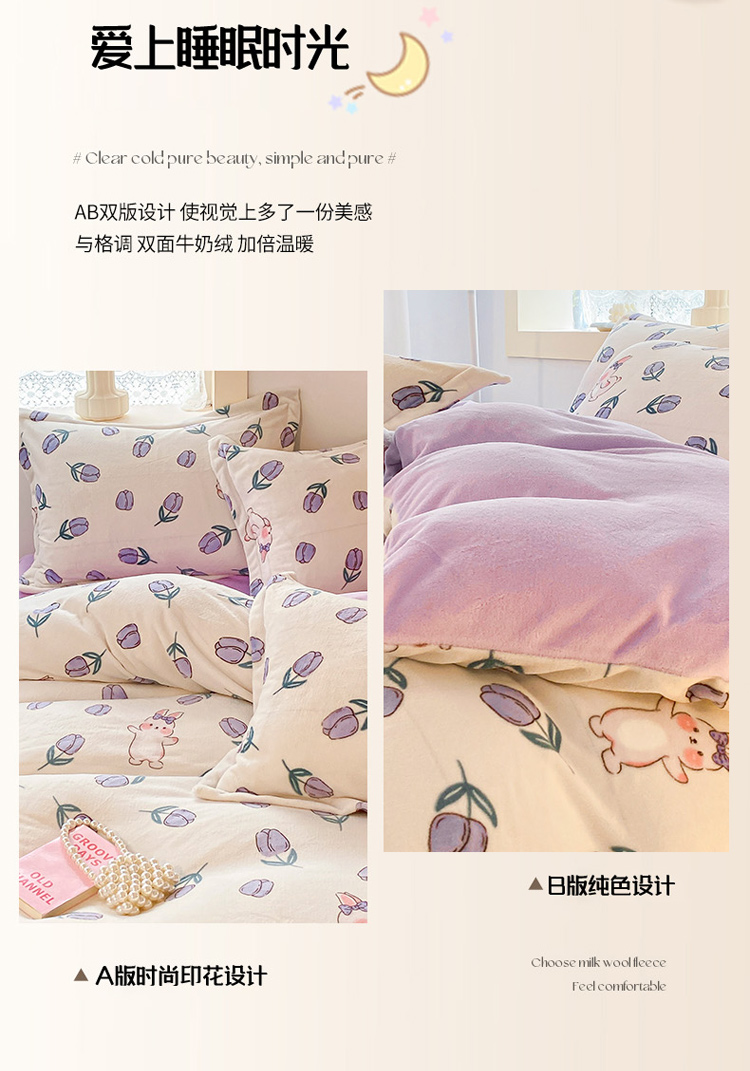 沐慕 2022新款牛奶绒四件套 紫系小兔