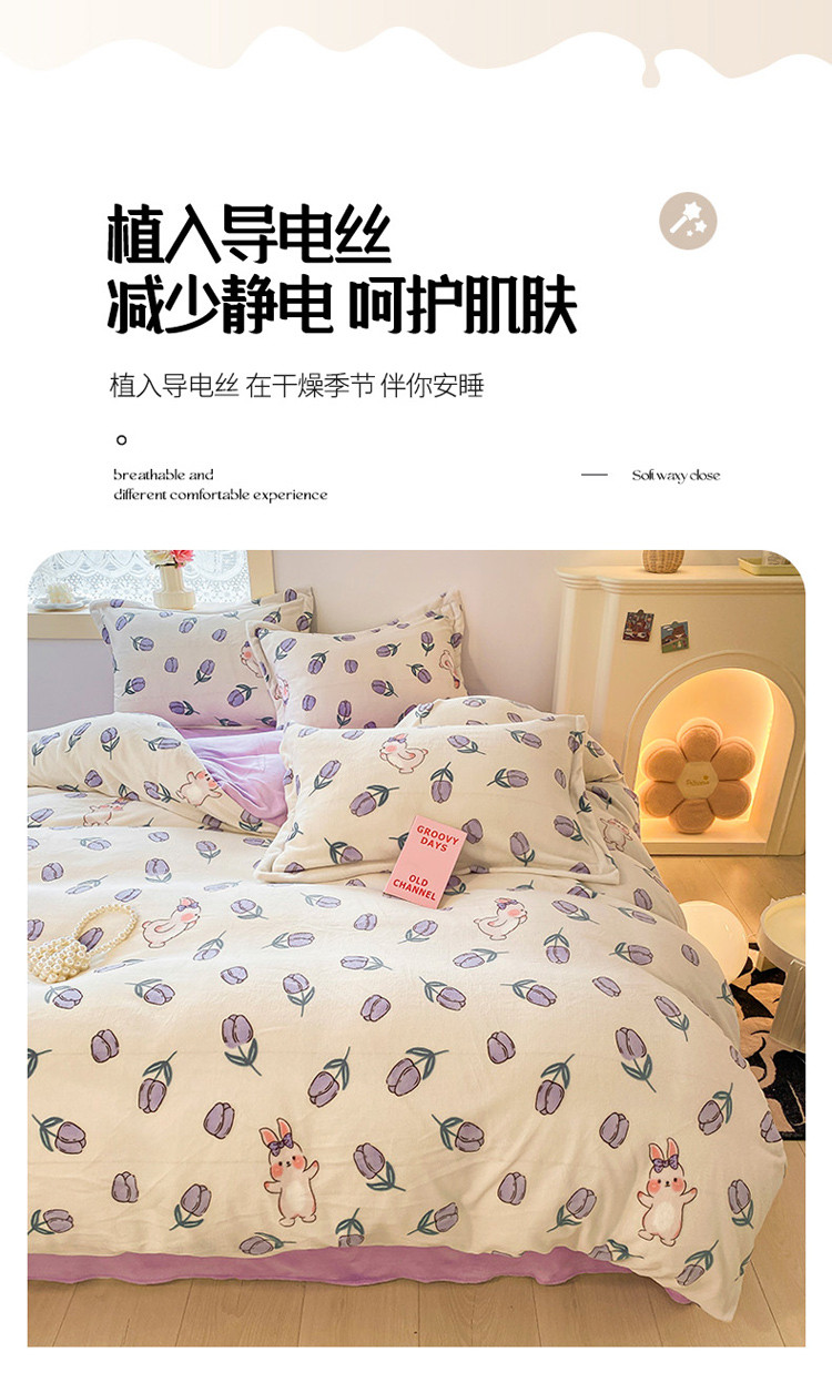 商品名称:沐慕 2022新款牛奶绒四件套 紫系小兔