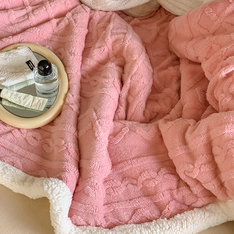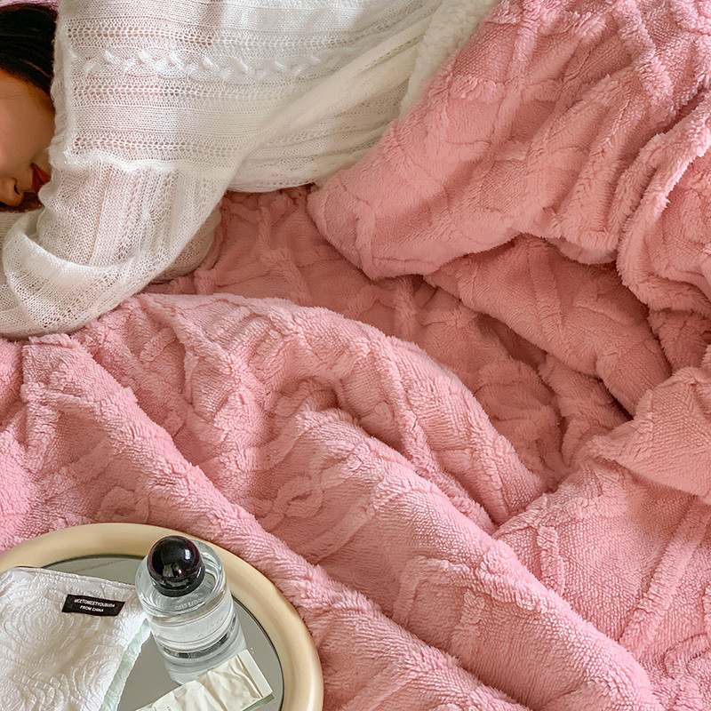 昔可家纺 2022新款ins风纯色保暖塔塔绒多功能毛毯 波纹粉