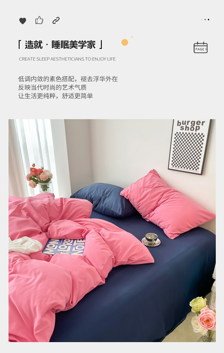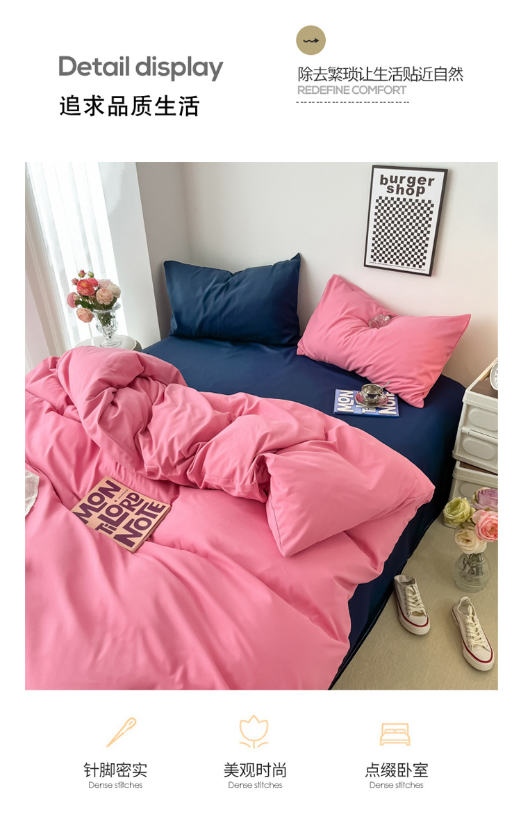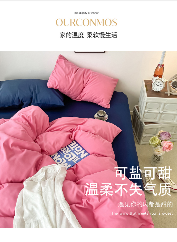 商品名称:雨帆家纺2022新款纯色系列四件套 慕斯玫瑰