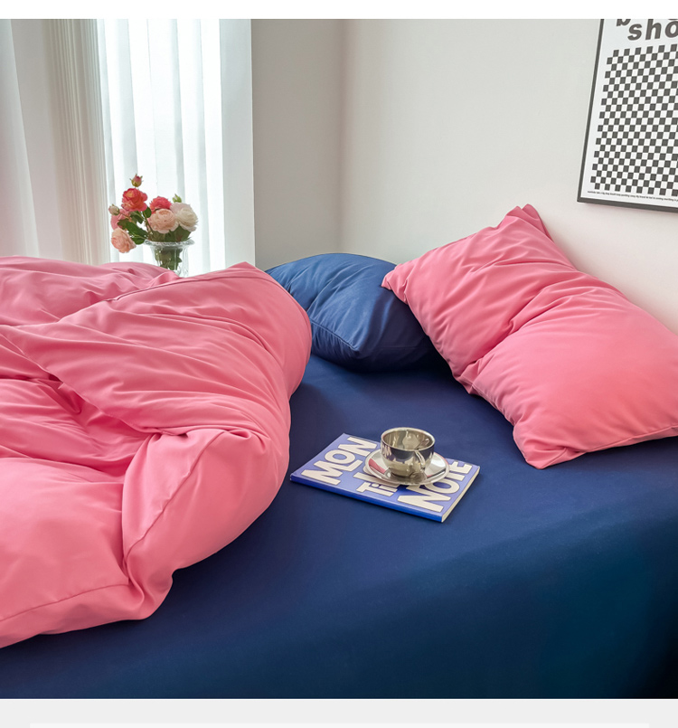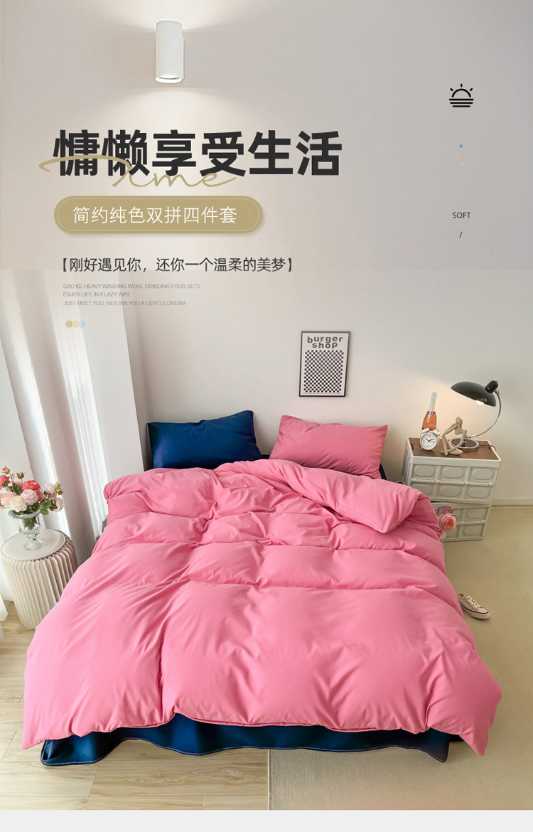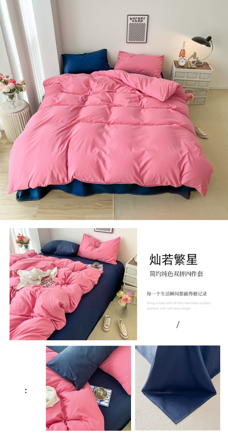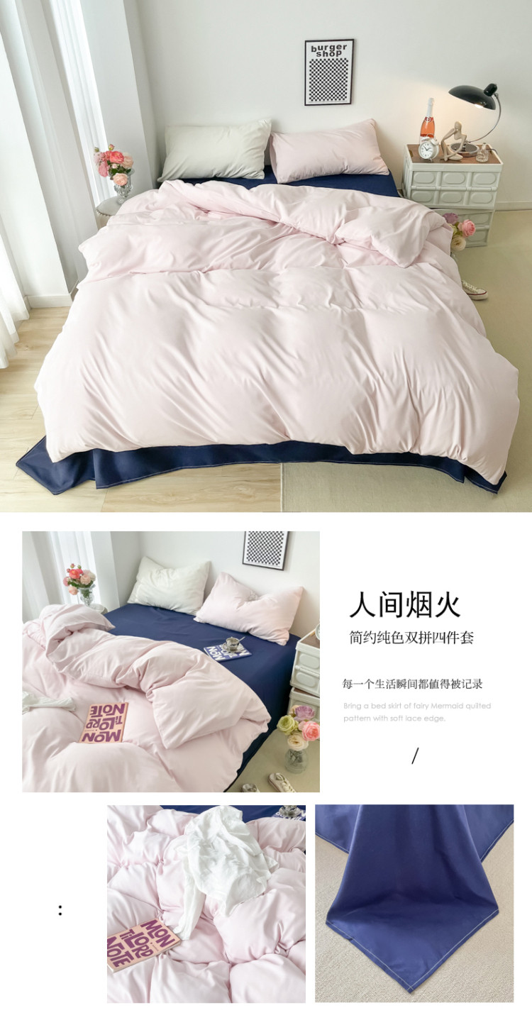 (总)雨帆家纺 2026新款素色双拼水洗棉混搭四件套,粉+浅黄,粉+玉,蓝+咖,米黄+兰,粉+天蓝,兰+深蓝,浅黄+粉,浅黄+黄,玉+咖