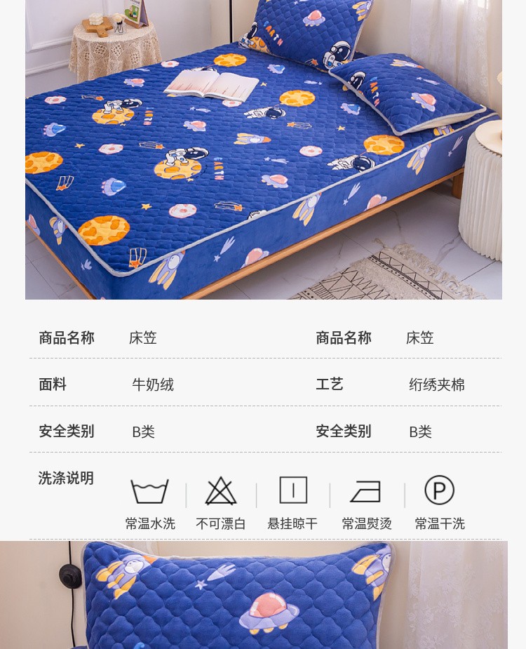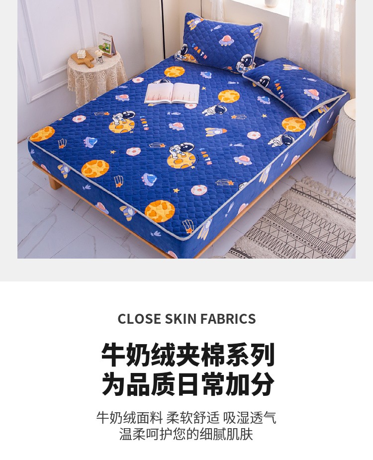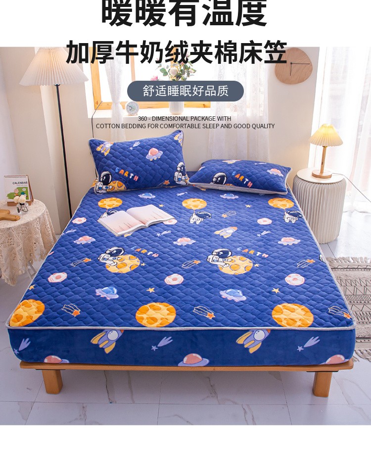 • 91家纺网 家纺一手货源 找家纺 小虾米 2022新款大床牛奶绒夹棉床笠 遨游太空