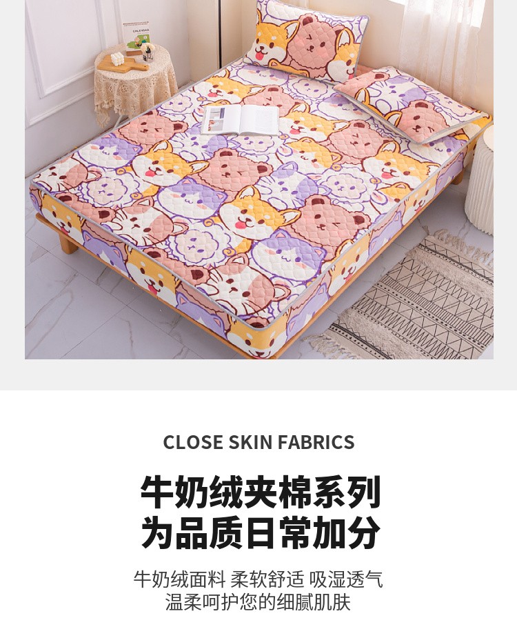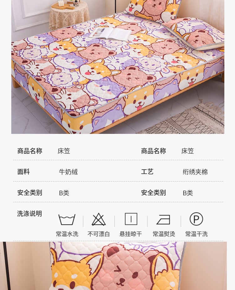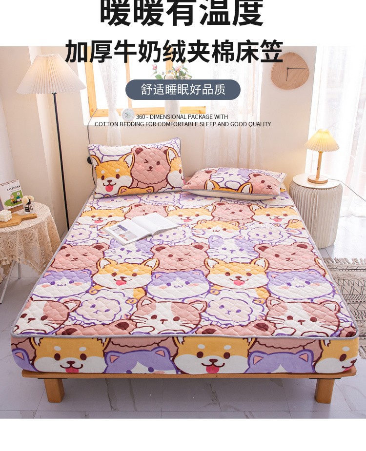 • 91家纺网 家纺一手货源 找家纺 小虾米 2022新款大床牛奶绒夹棉床笠 萌犬
