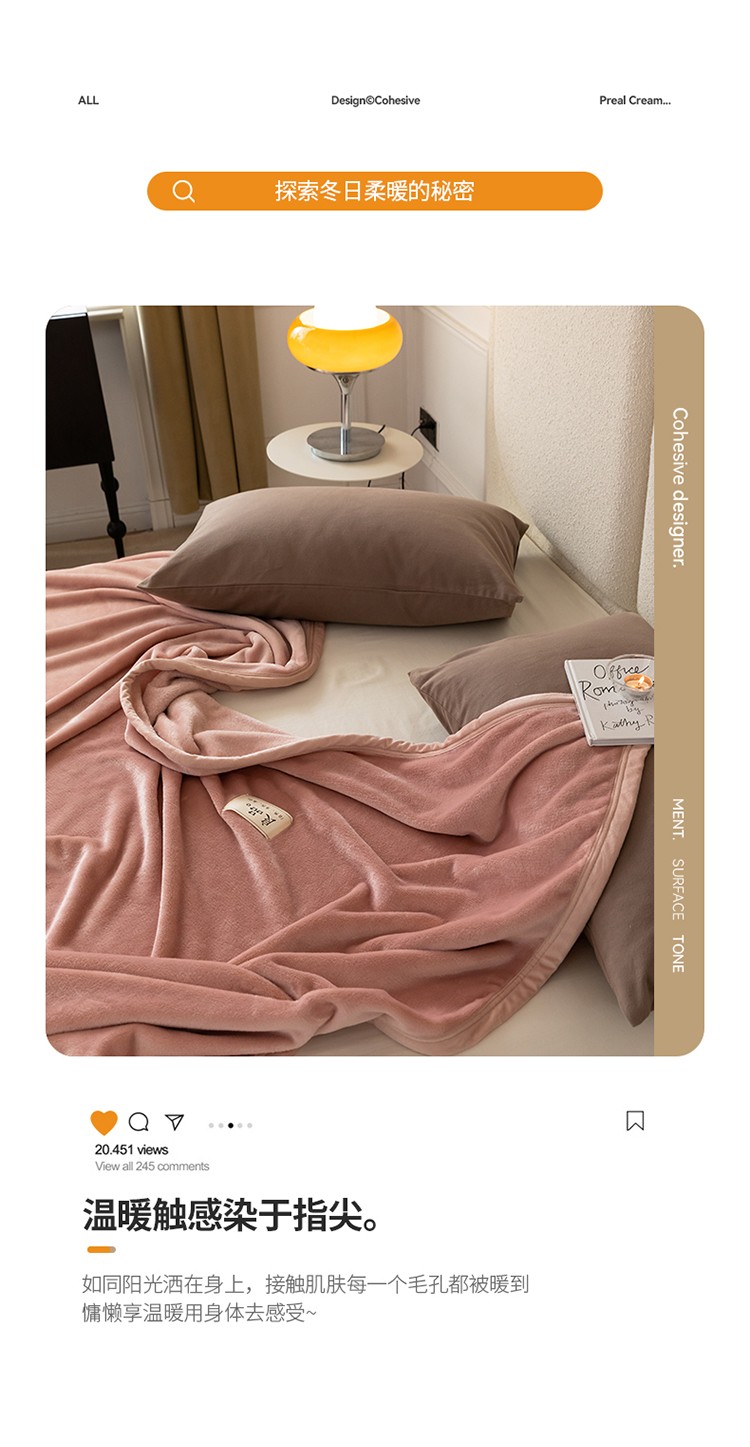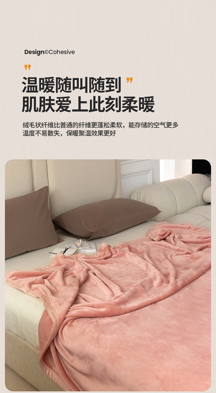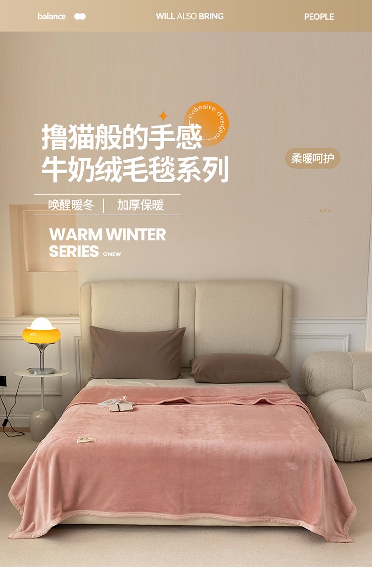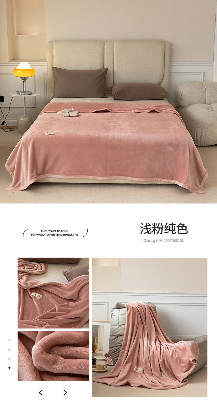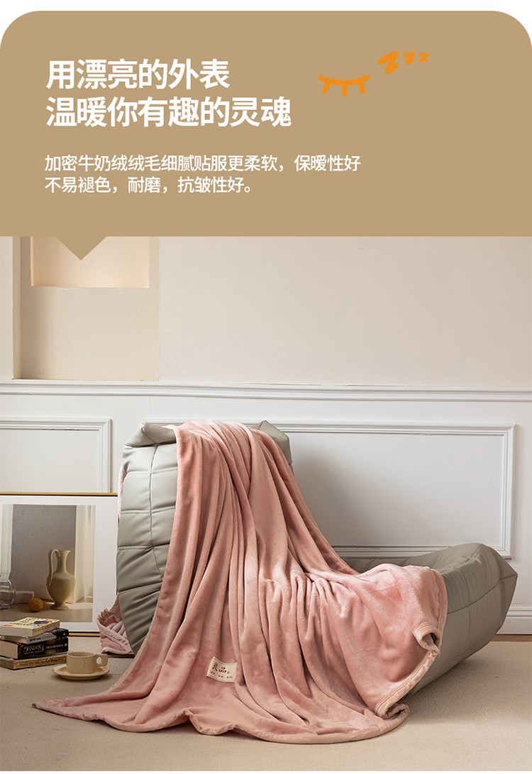 商品名称:寐眠 2022新款秋冬保暖加厚牛奶绒毛毯 浅粉纯色
