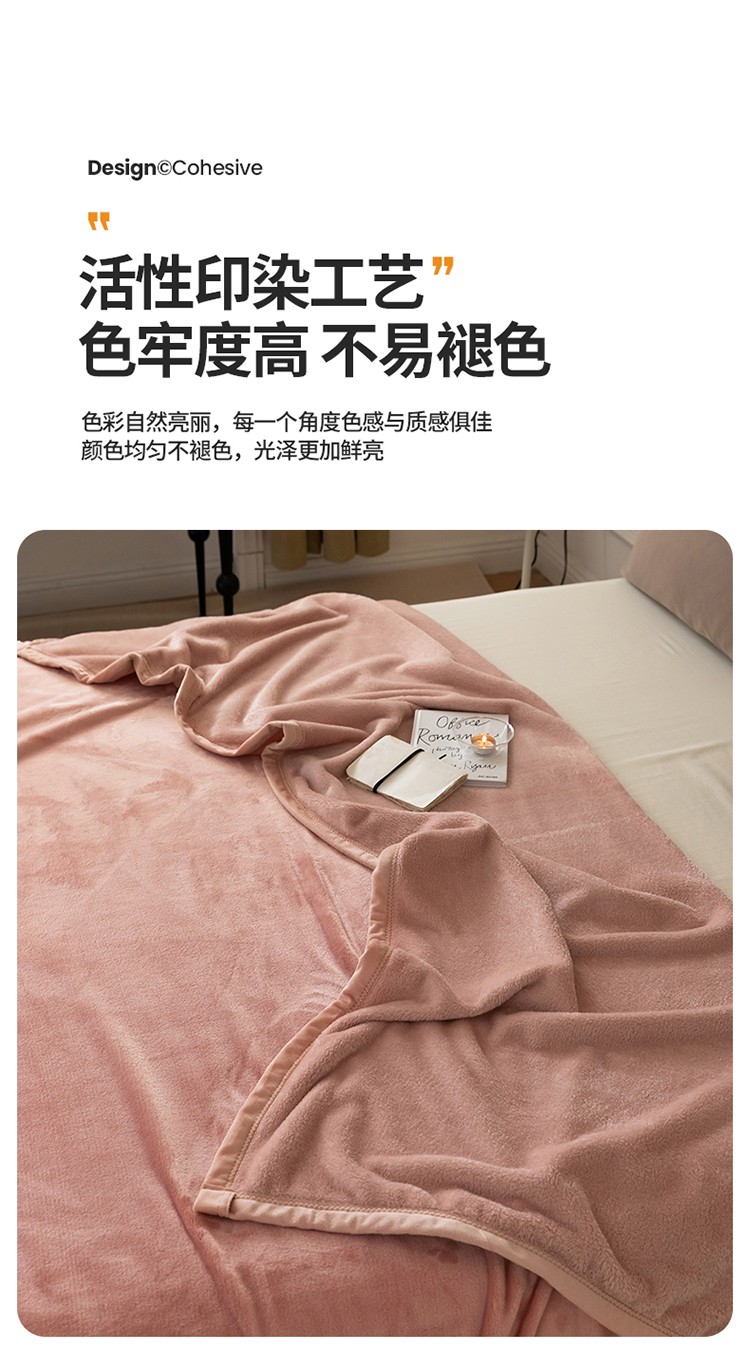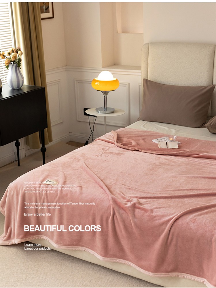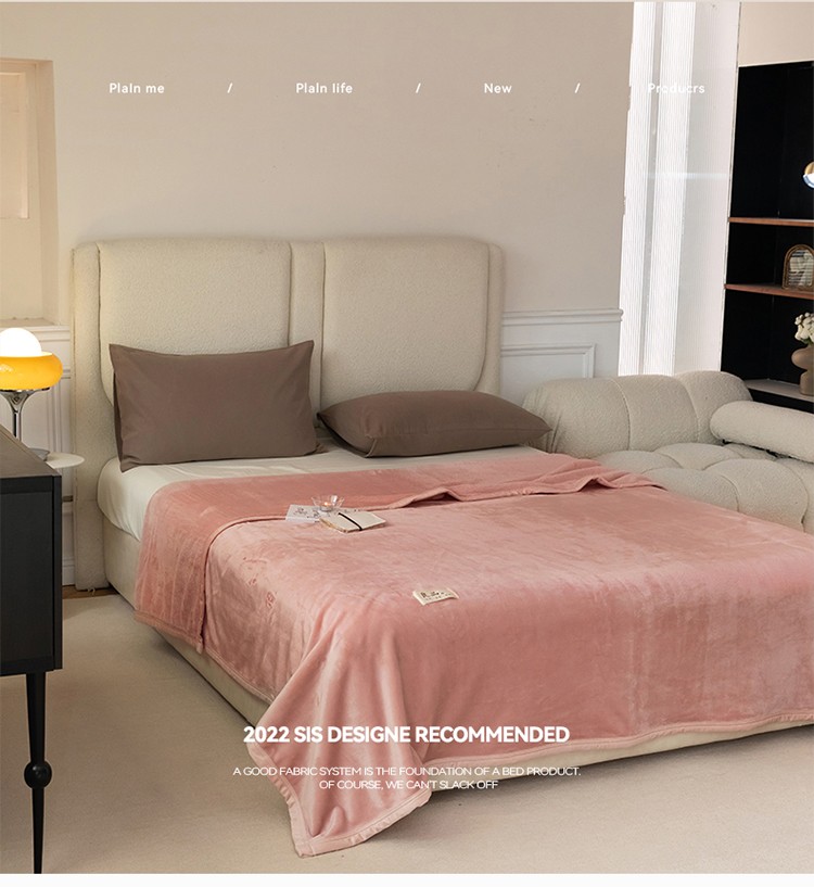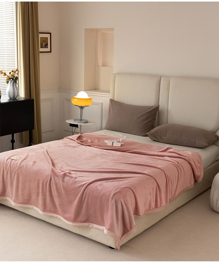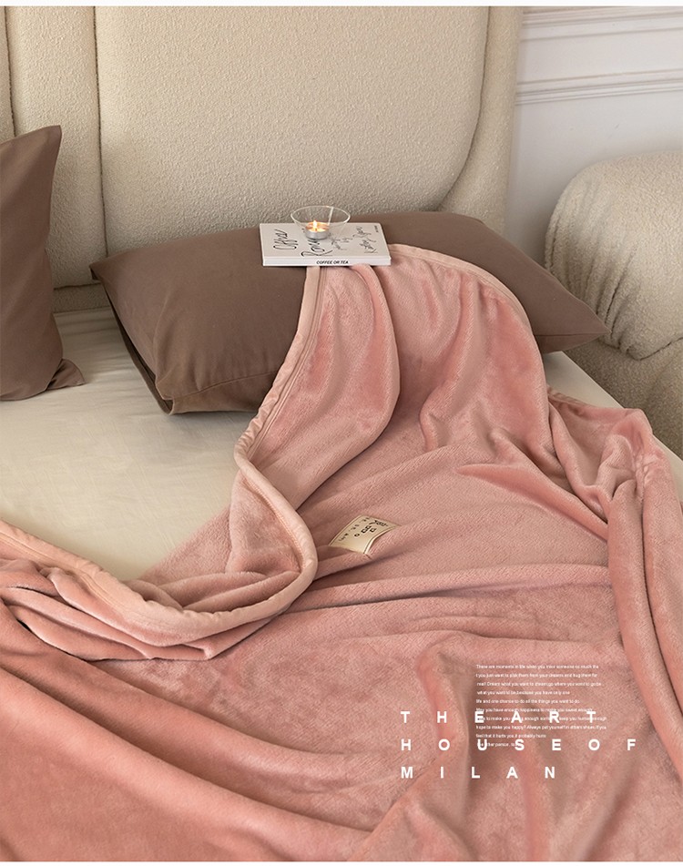 寐眠 2022新款秋冬保暖加厚牛奶绒毛毯 浅粉纯色