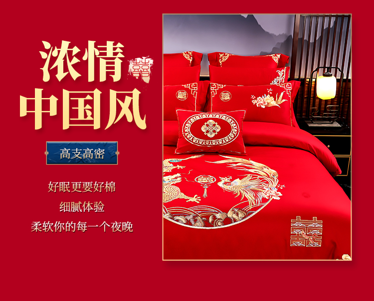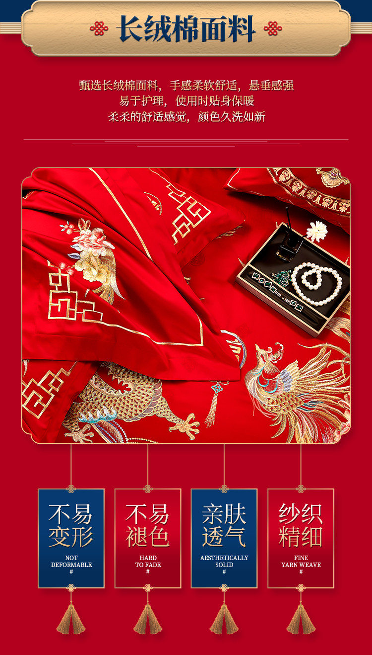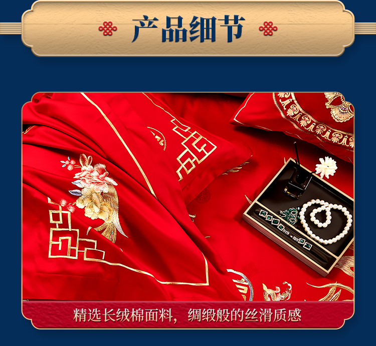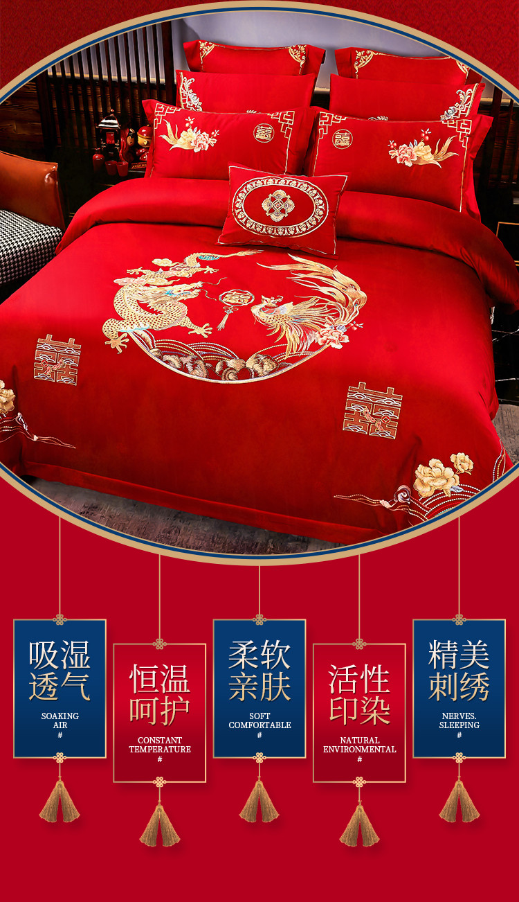 商品名称:皇潮婚庆馆 新款60支长绒棉婚庆四件套 龙凤添喜