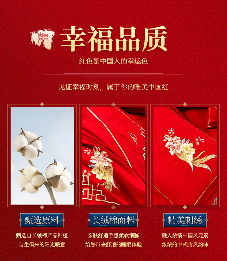 (总)皇潮婚庆馆 2025新款A类布款全棉刺绣婚庆四件套系列,花辰喜盈,百子送喜,龙悦凤鸣,喜事连连,喜迎鸿运