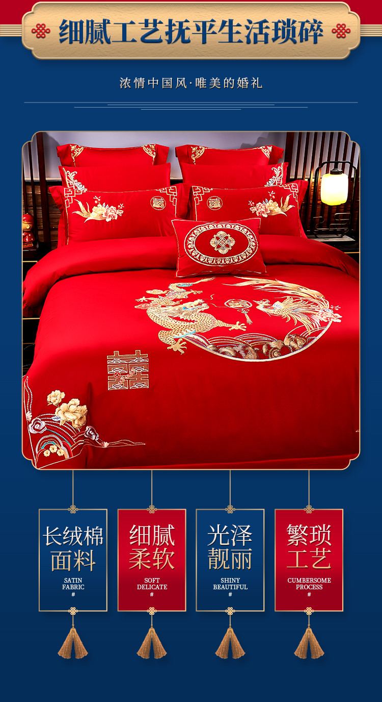 (总)皇潮婚庆馆 新款新疆长绒棉高端婚庆刺绣四件套,龙凤合玺,祥龙禧凤