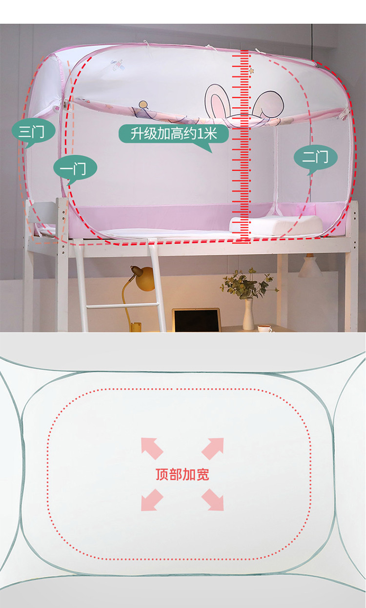 商品名称:夏彩 2023新款子母上下铺学生免安装蚊帐 星空兔