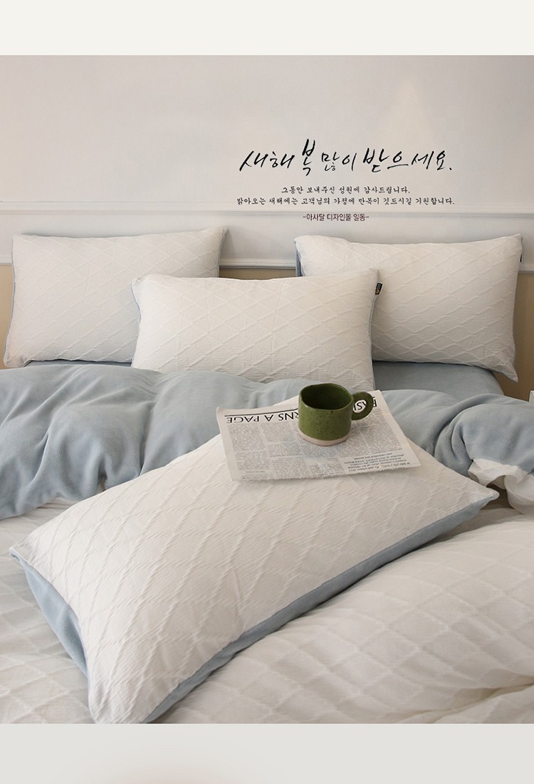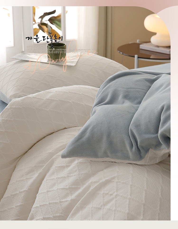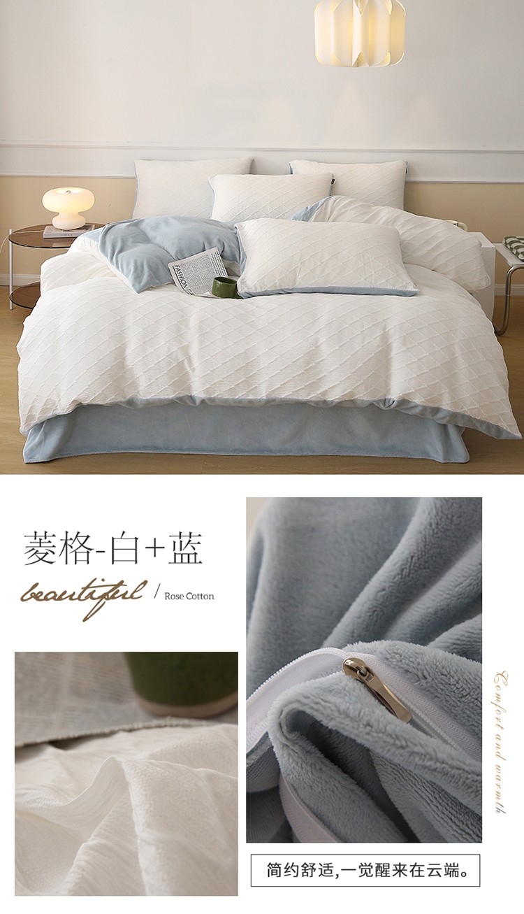 当前位置: 91家纺网 > 商品网购 > 床品套件 > 四件套 > 全棉普通四件套 > 婳庭 2023新款水洗棉绒菱格四件套 菱格-白+蓝