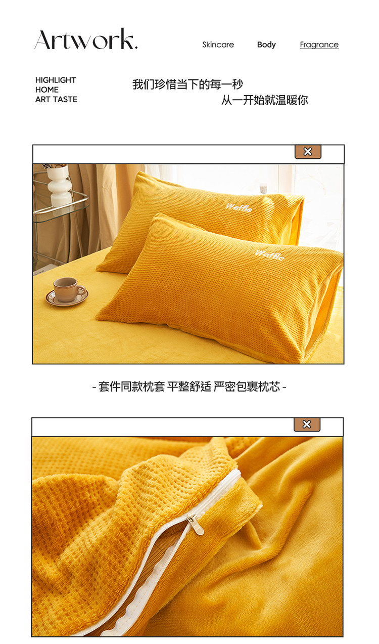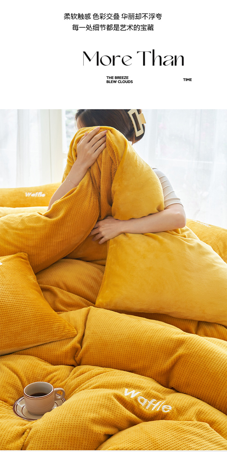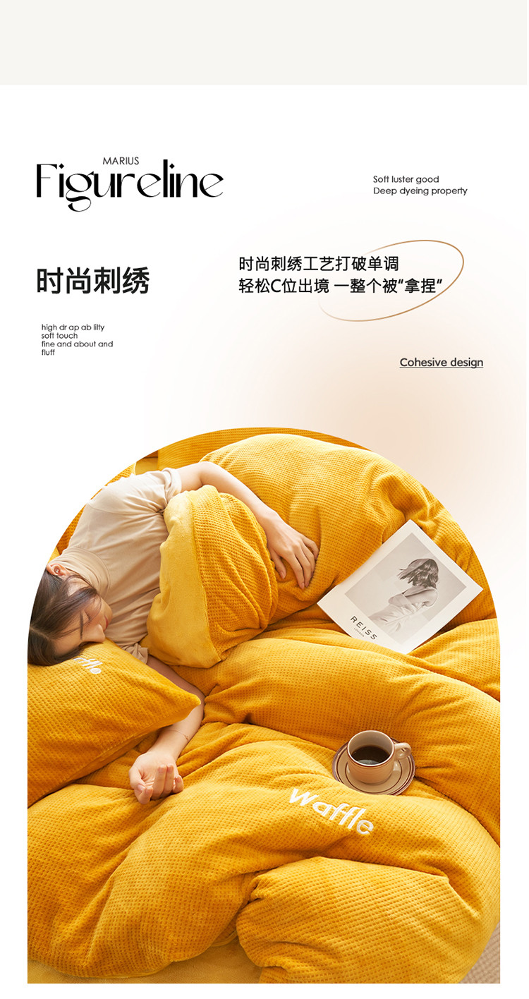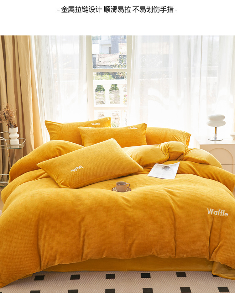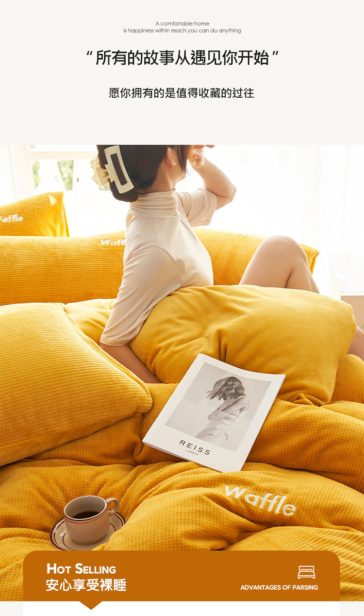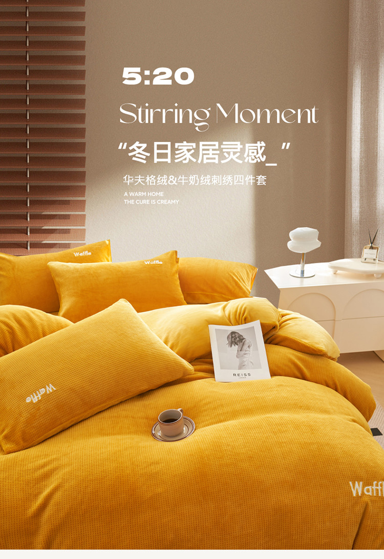 商品名称:晨曦 2022新款华芙绒四件套全消光牛奶绒四件套 芝拧茶茶