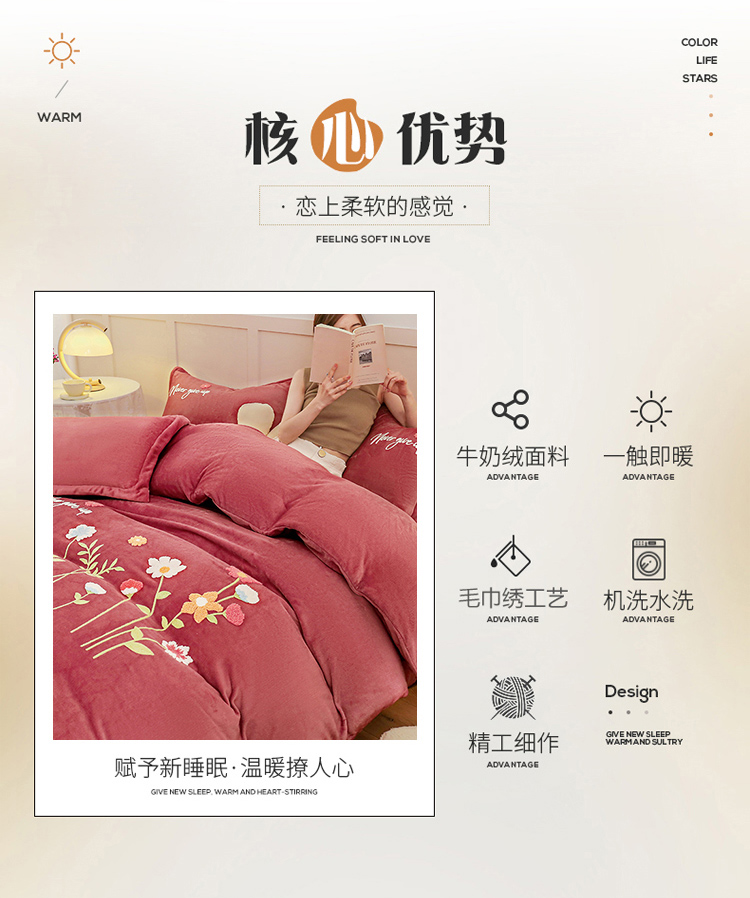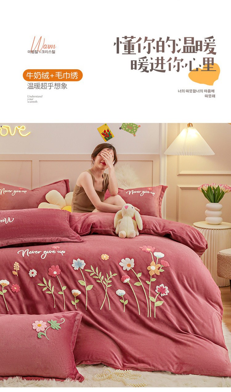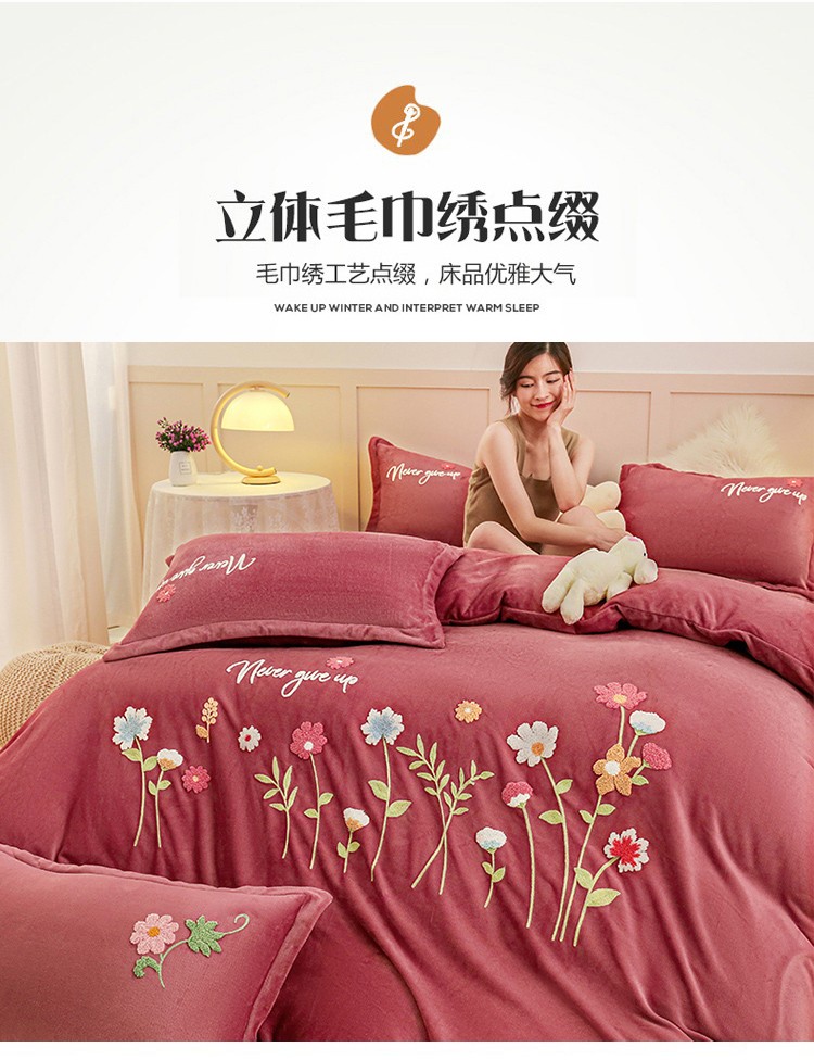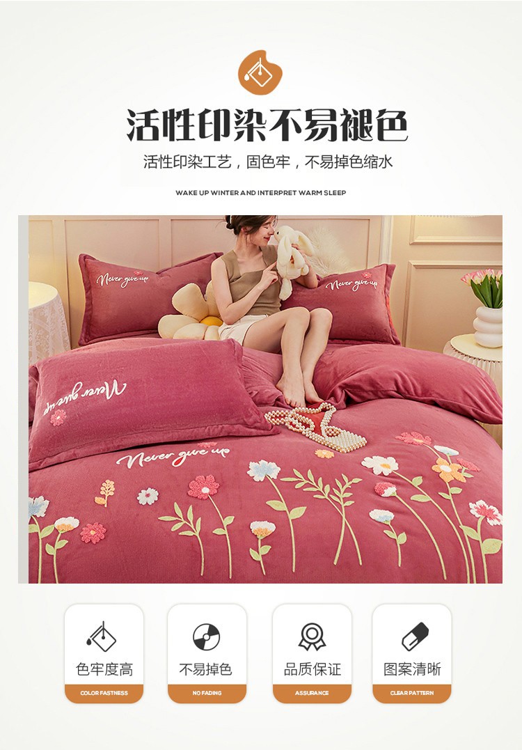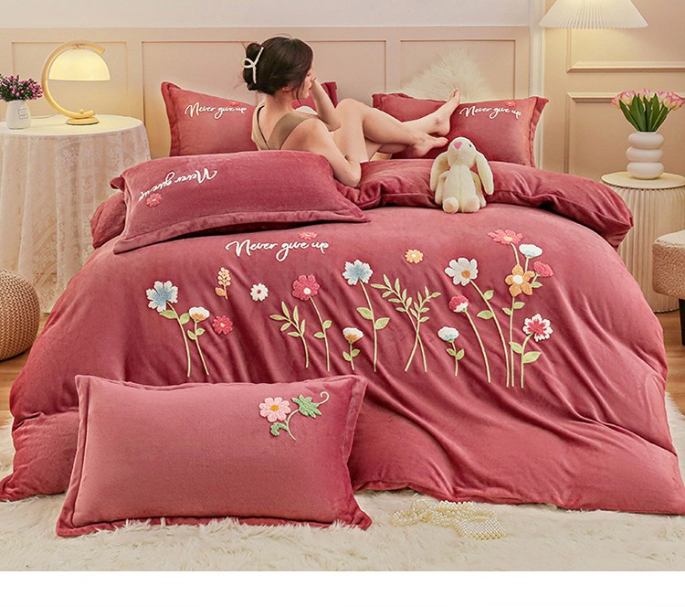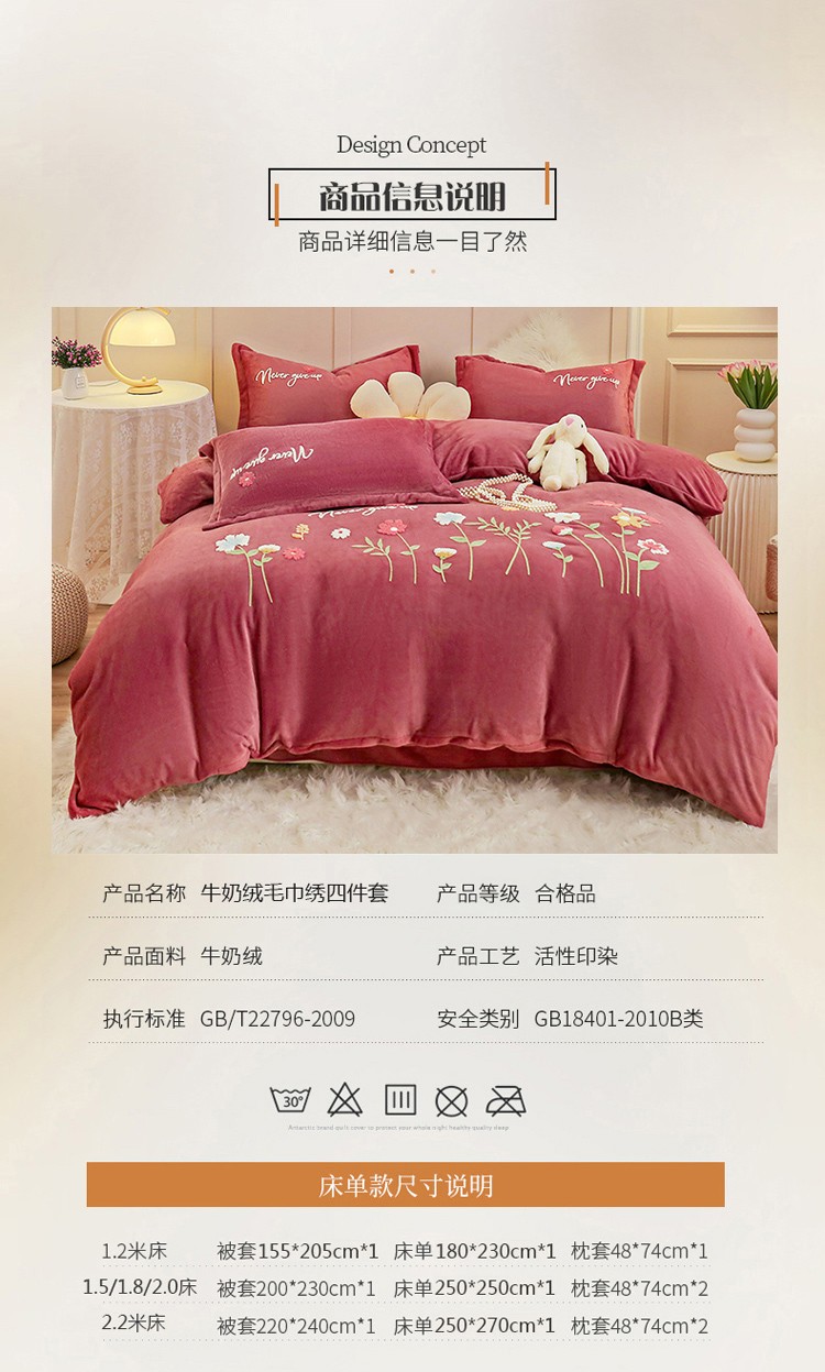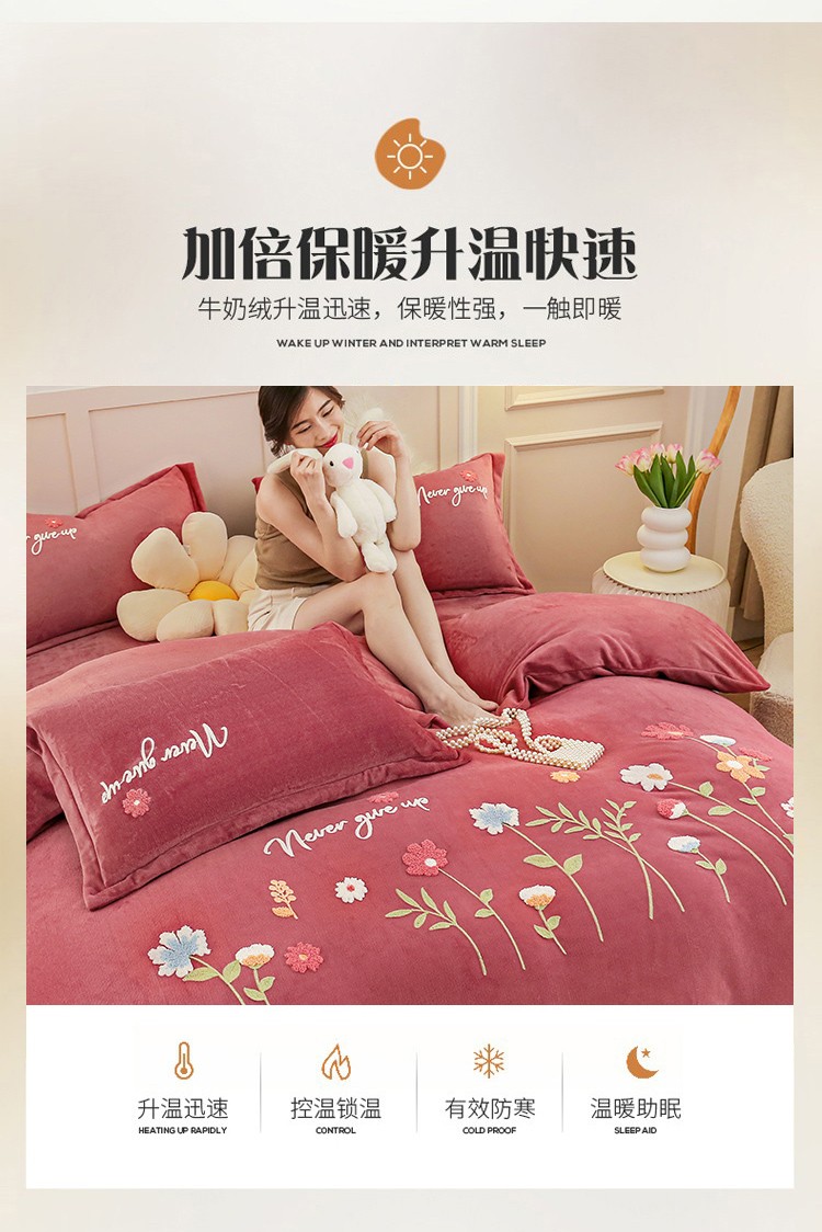 (总)漫布云2025秋冬新款全消光大版花卉平绣牛奶绒刺绣款四件套--绽放系列,绽放-艾玛橙, 绽放-豆沙红 ,绽放-樱花粉, 绽放-婴儿蓝 ,绽放-高级灰,绽放-梦幻紫