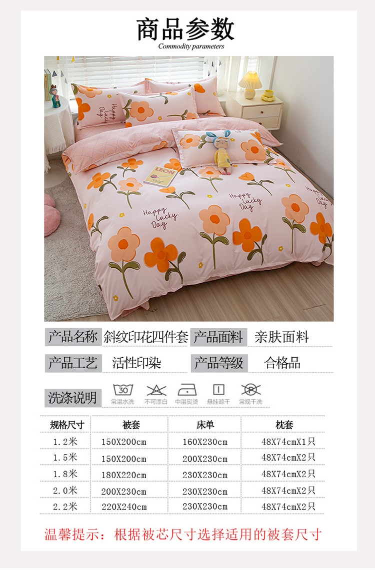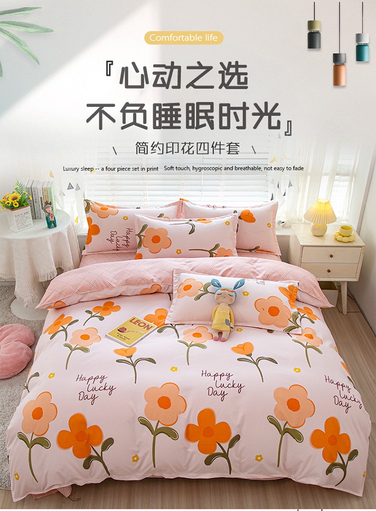 商品名称:大G 2024新款140克印花磨毛四件套 幸运小花-黄