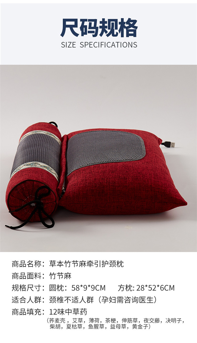 商品名称:乐可 2022新款竹节麻草本牵引护颈枕 古典红