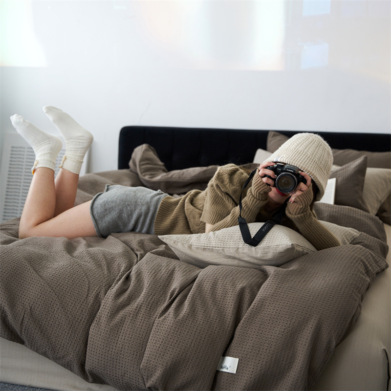 当前位置: 91家纺网 > 商品网购 > 床品套件 > 四件套 > 牛奶绒四件套 > 简家居2022新款华夫格二代全面升级系列四件套 摩卡棕+杏咖