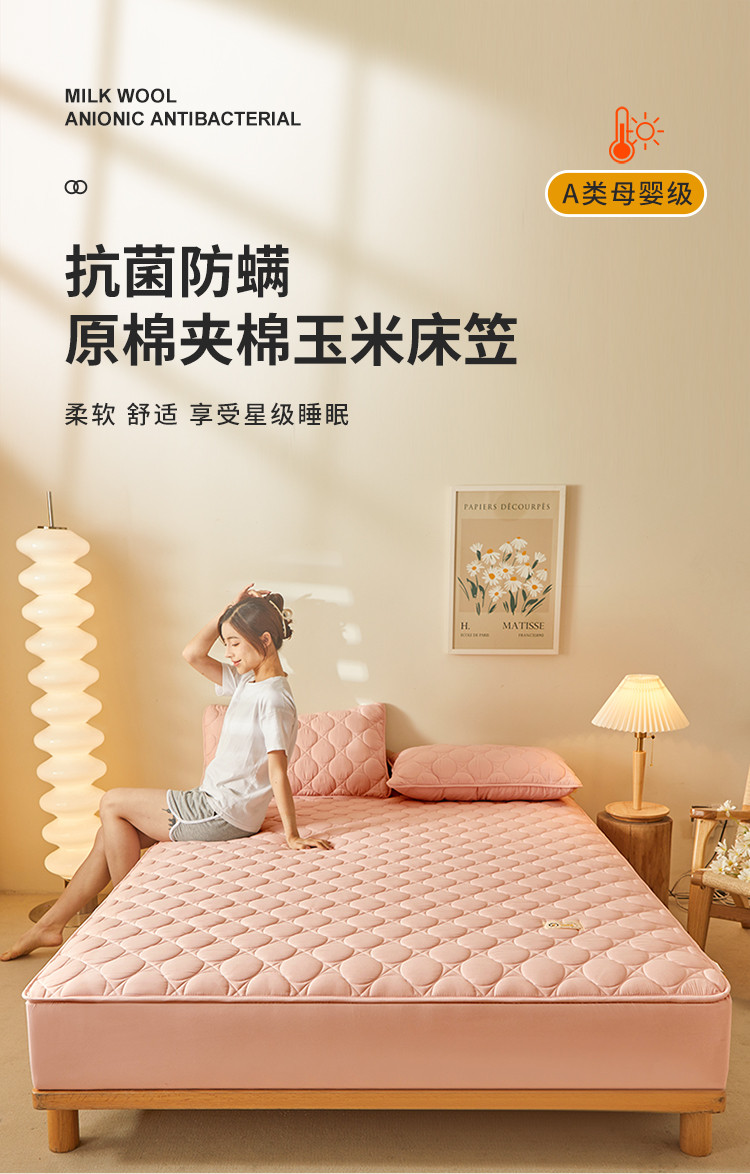 • 91家纺网 家纺一手货源 找家纺 给笠 2023新款玉米纤维床笠 方圆-淡粉