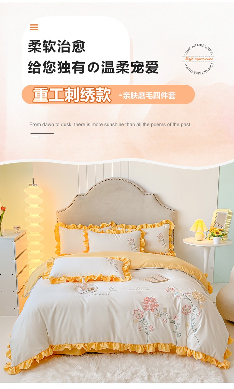 (总)富盛家纺 2025新款牛奶绒床裙款盘花刺绣四件套韩版法式公主风--梦洛伊系列,梦洛伊-粉,梦洛伊-绿,梦洛伊-黄,梦洛伊-白,梦洛伊-蓝,梦洛伊-紫