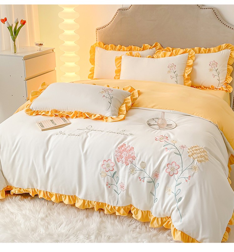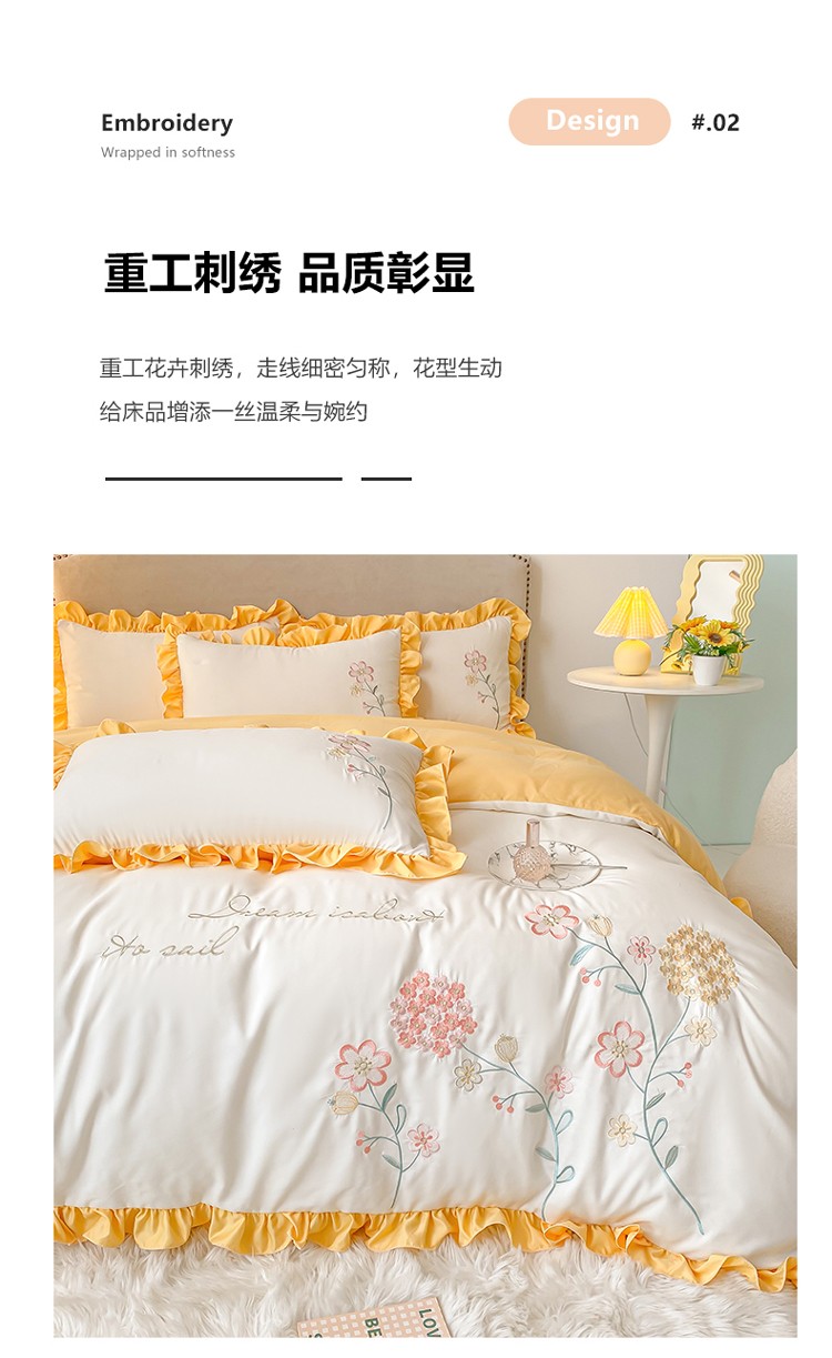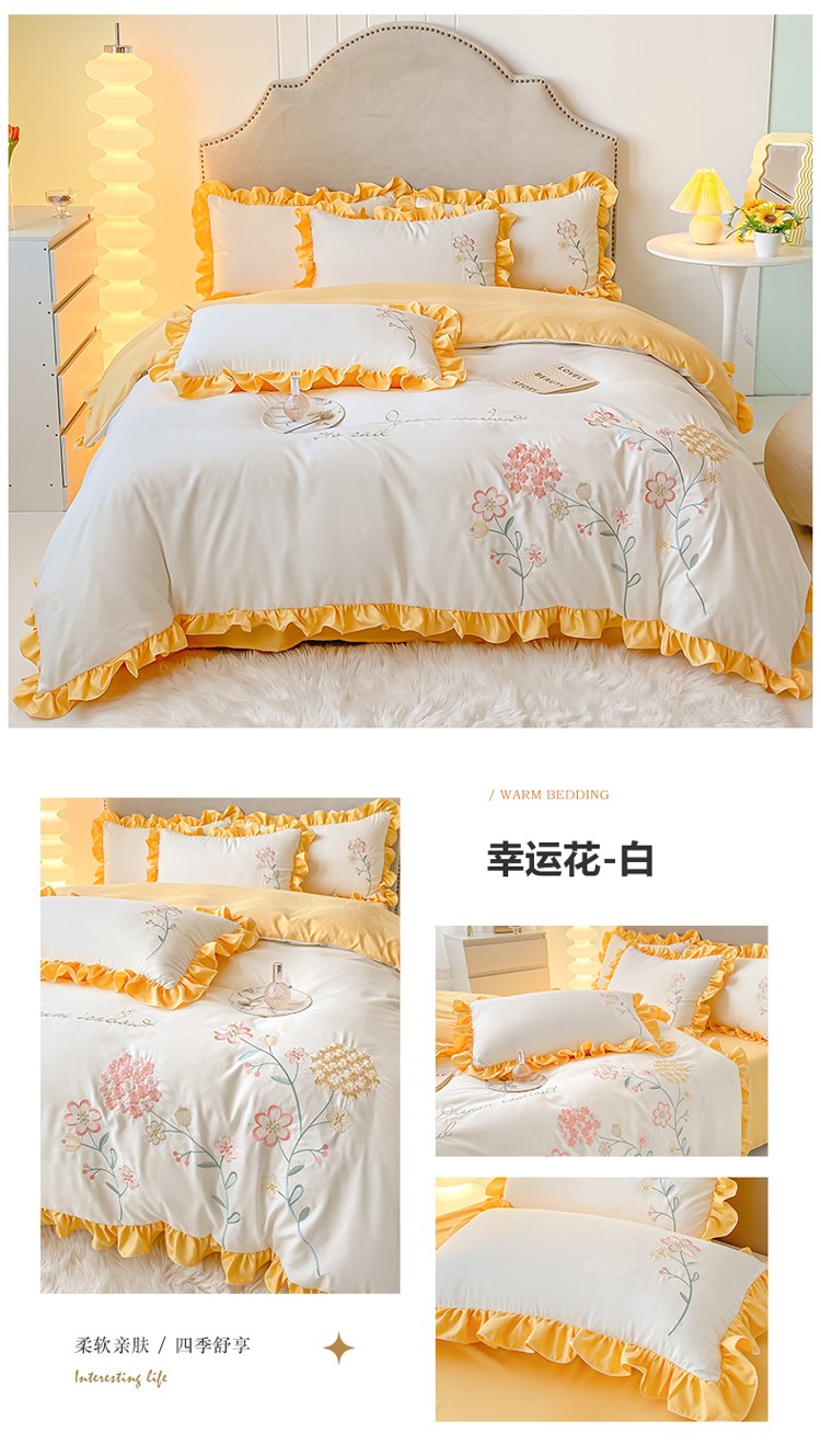 (总)富盛 2024新款水洗亲肤棉刺绣四件套公主风四件套,幸运花—白,幸运花—粉,幸运花—黄,幸运花—蓝,幸运花—豆沙,幸运花—紫,幸运花—大红,幸运花—绿