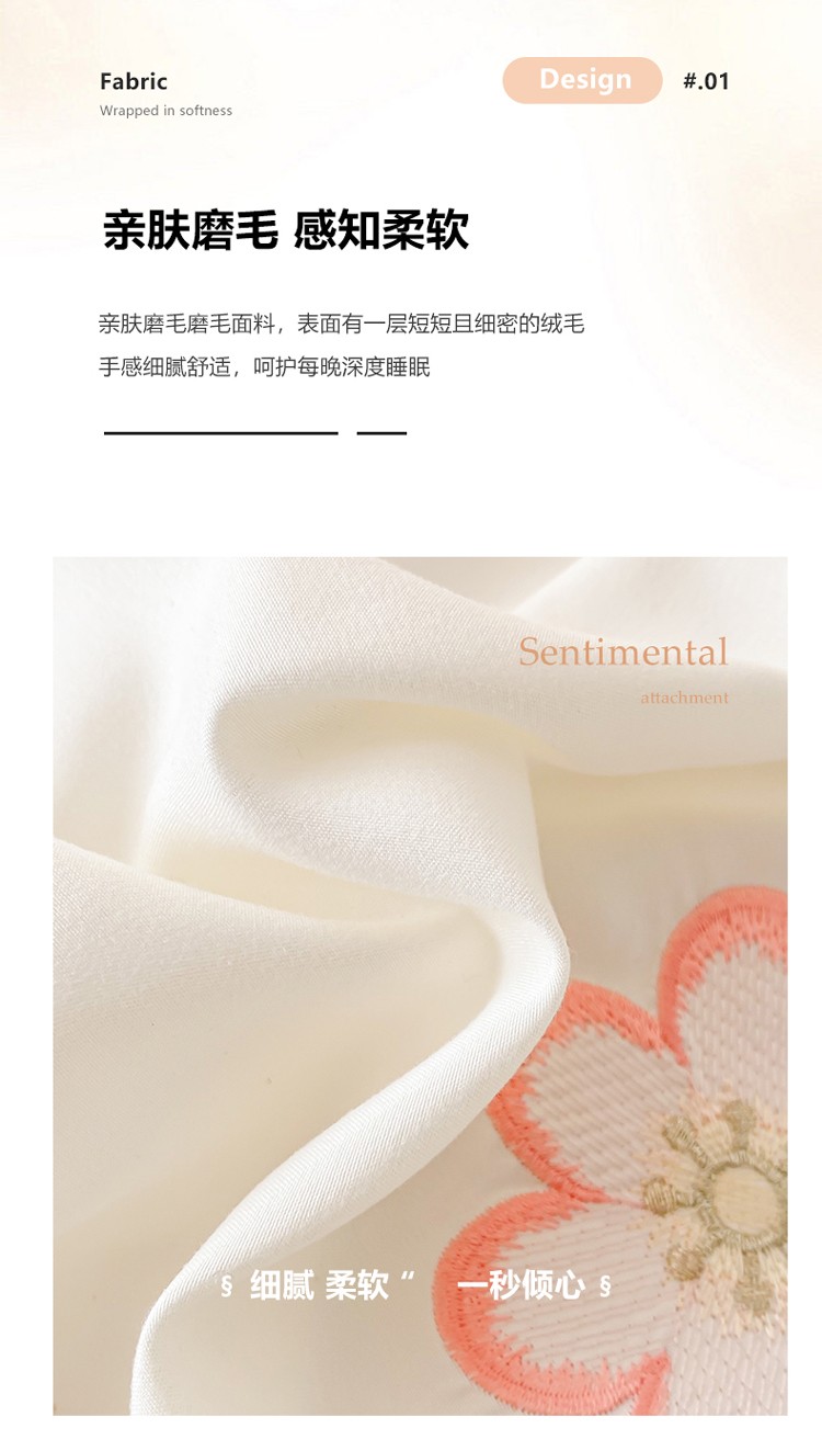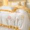 富盛 2024新款水洗亲肤棉刺绣四件套公主风四件套 幸运花—白