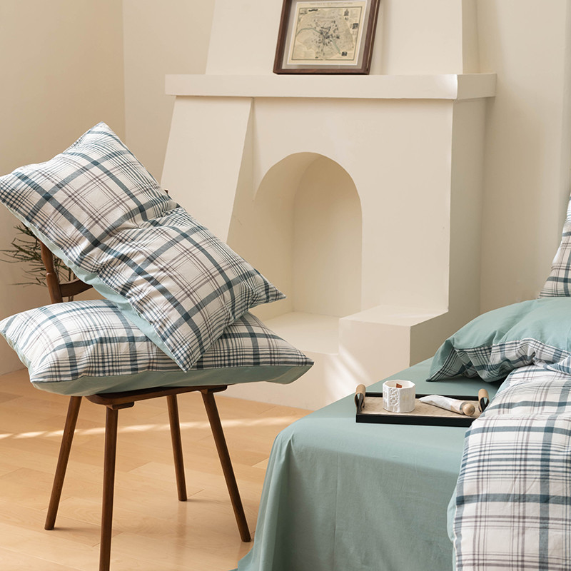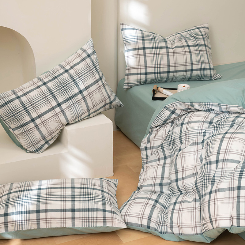 商品名称:柠馨 2023新款全棉色织水洗棉单品枕套 青柠格