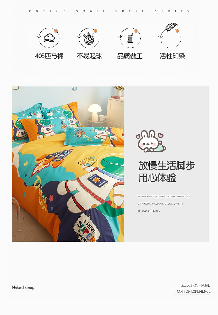 商品名称:曼秀琳 2023新款40s匹马棉印花系列四件套 太空探秘