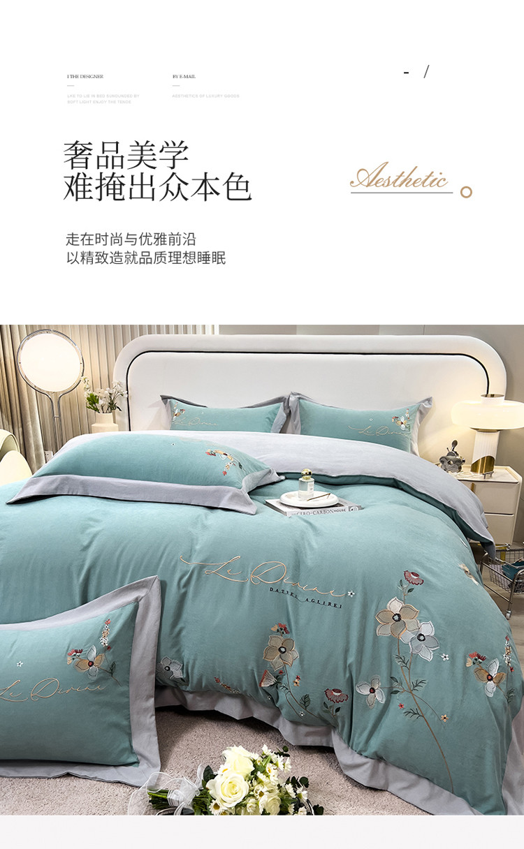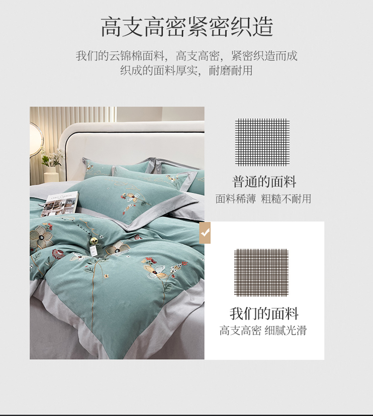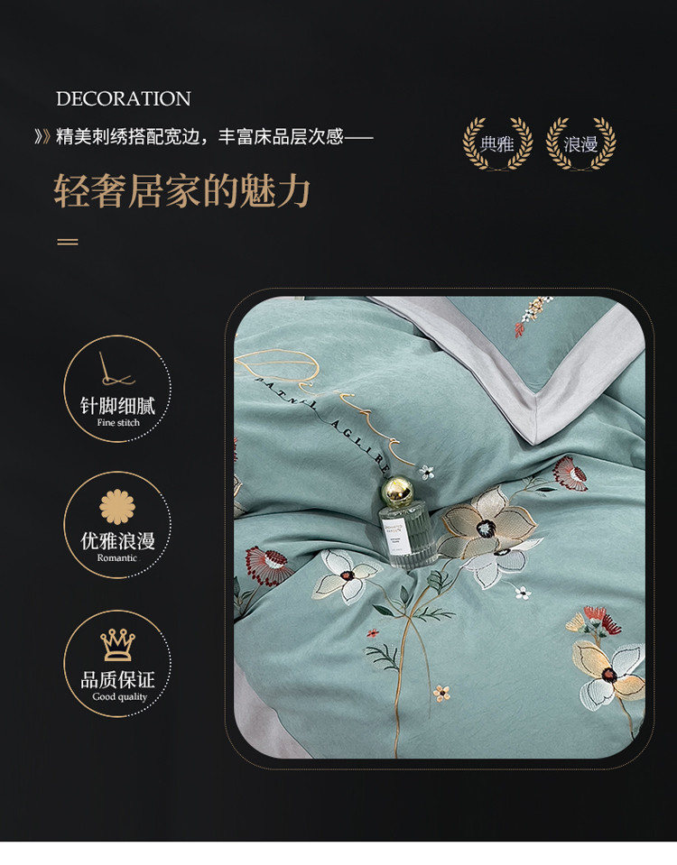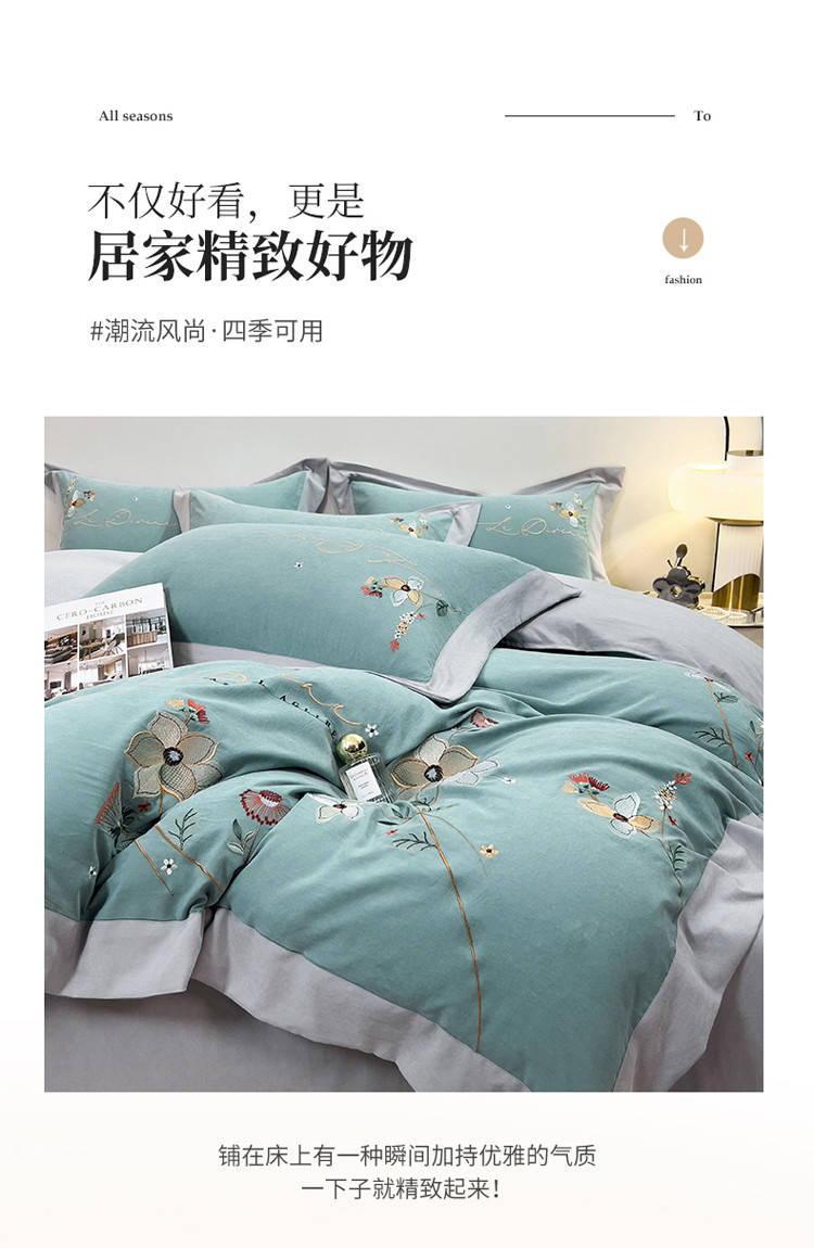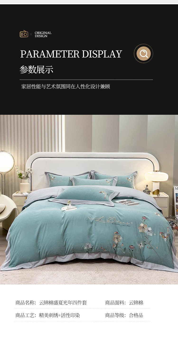 商品名称:2024新款秋冬保暖云锦棉刺绣宽边盛夏光年系列四件套 盛夏光年-田园绿