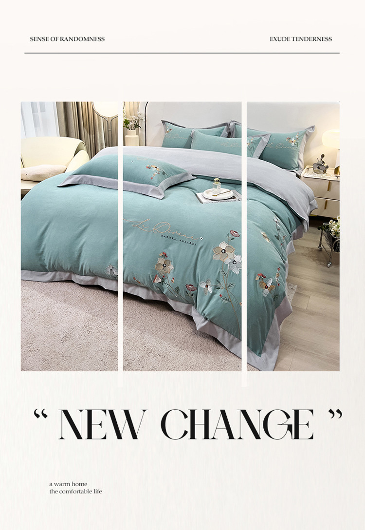 2024新款秋冬保暖云锦棉刺绣宽边盛夏光年系列四件套 盛夏光年-田园绿