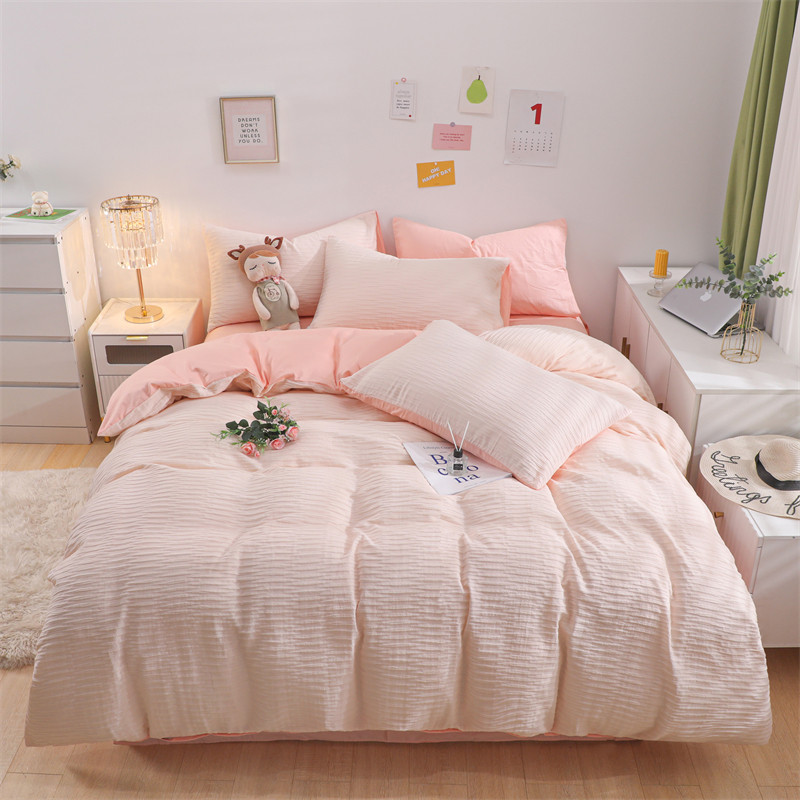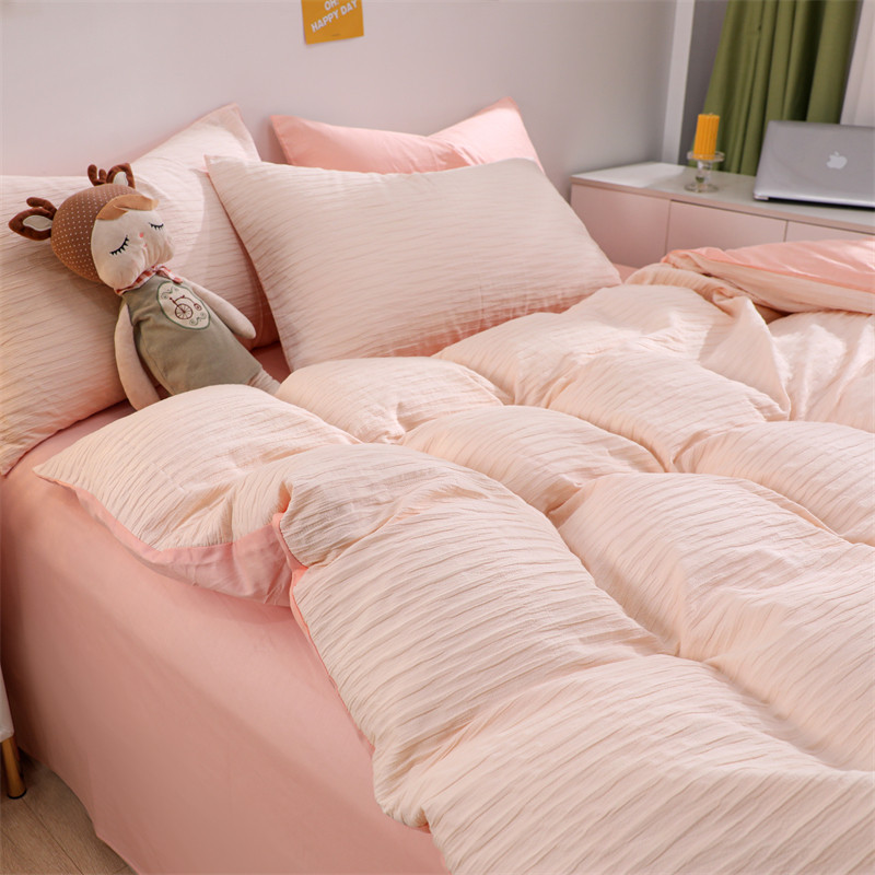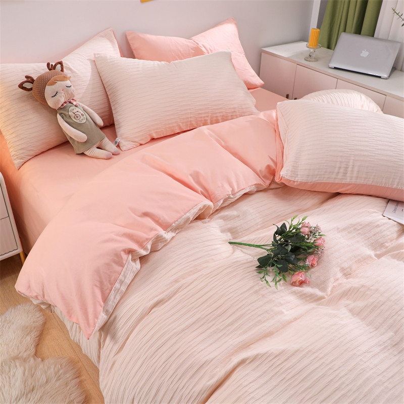 商品名称:沐晴家纺 2023新款泡泡纱四件套 樱花粉