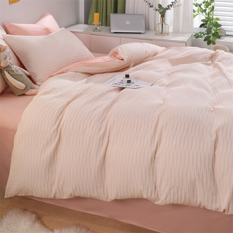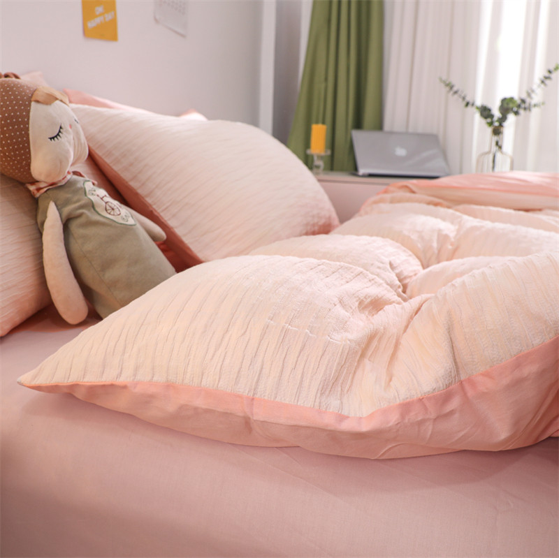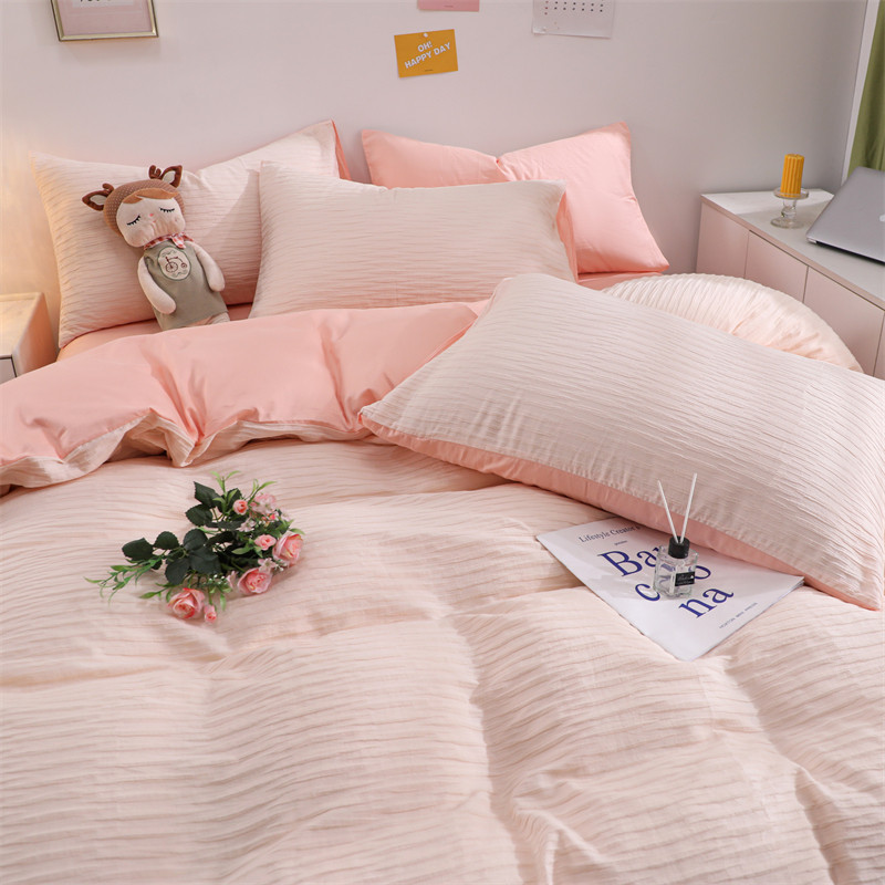 沐晴家纺 2023新款泡泡纱四件套 樱花粉