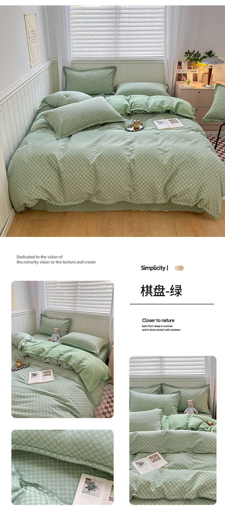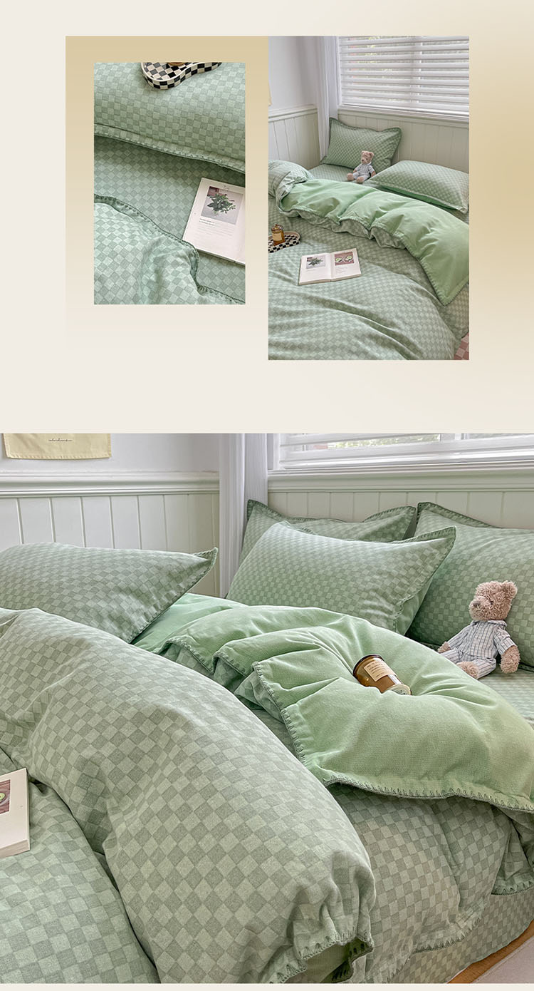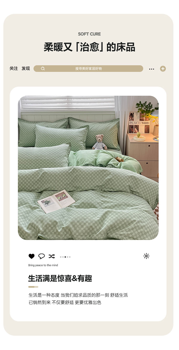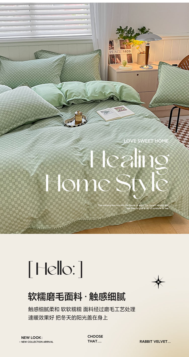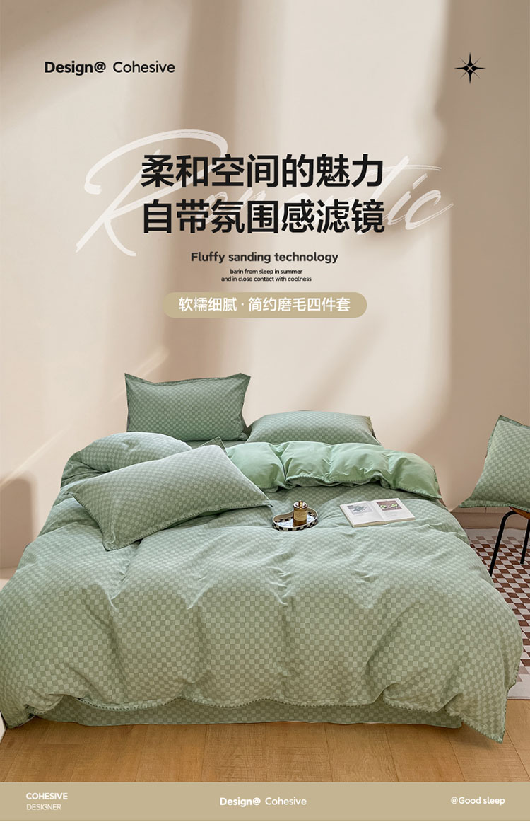 当前位置: 91家纺网 > 商品网购 > 床品套件 > 四件套 > 普通磨毛四件套 > 帅露 2023新款碳素软糯磨毛四件套 棋盘-绿